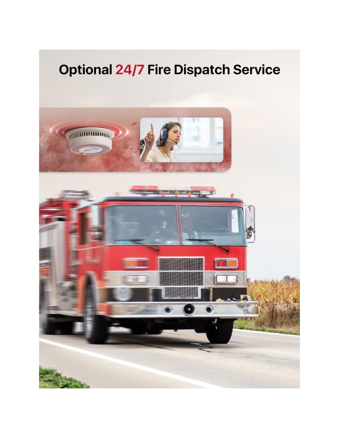 - Despacho Rápido de Bomberos en Solo 3 Segundos: Al suscribirte al plan de suscripción premium opcional Protect+ que proporciona servicio de monitoreo profesional 24/7, cuando se activa una alarma, recibirás un mensaje del centro de monitoreo en 3 segundos para verificar la emergencia. Después de verificar la emergencia, un camión de bomberos será despachado de inmediato