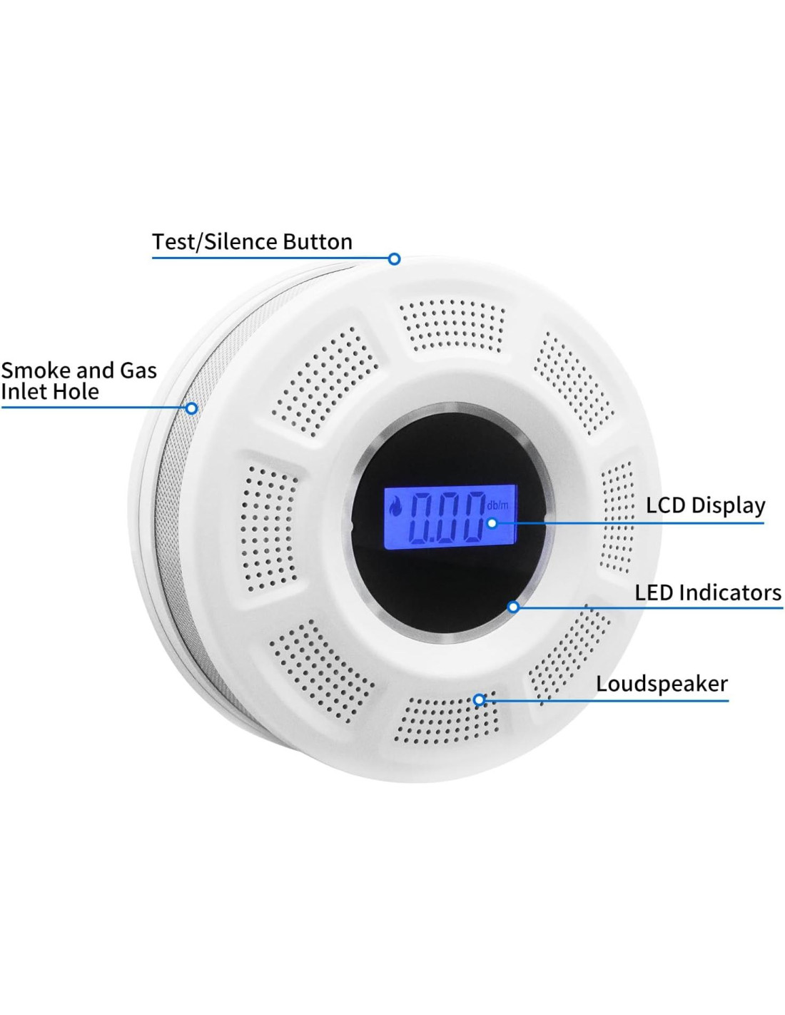 - Pantalla Digital LCD: El Detector de Humo y Monóxido de Carbono con pantalla LCD, indica claramente la concentración de monóxido de carbono CO en tiempo real en el aire circundante y el estado de funcionamiento de la alarma. Para ahorrar energía, la pantalla LCD solo muestra el valor cuando se detecta monóxido de carbono o humo.