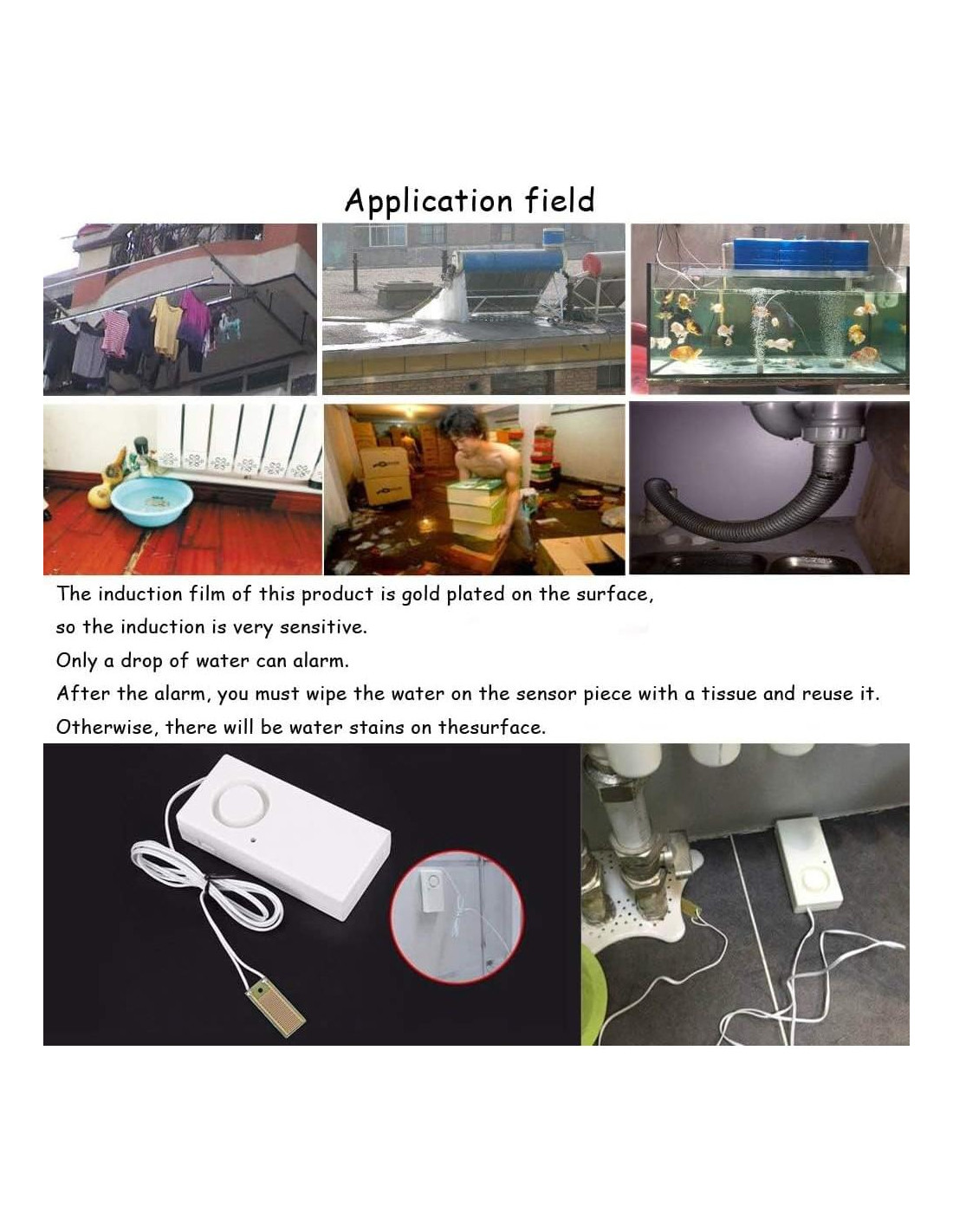 - Paquete Incluido: Ximimark 2Pcs Alarma de Fuga de Agua Detector de Nivel de Inundación para Bañera Fregadero Detección de Desbordamiento Sensor Alerta de Seguridad para Hogar Garaje Cocina 120db
