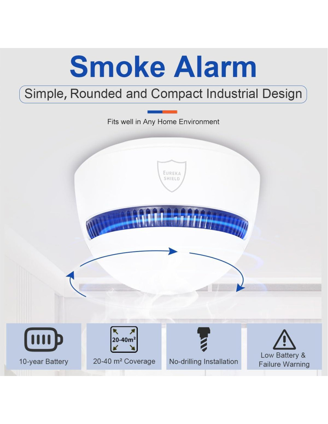- [Sensor Fotoeléctrico de Grado Militar] El detector de humo fotoeléctrico certificado EN14604 detecta incendios humeantes 15 minutos más rápido que los sensores de ionización tradicionales. La tecnología de muestreo de aire triple reduce las alarmas falsas por cocina/vapor en un 70%. Cubre hasta 430 pies cuadrados (40m), con lógica adaptativa para cocinas/baños, proporcionándote la primera alerta de seguridad.