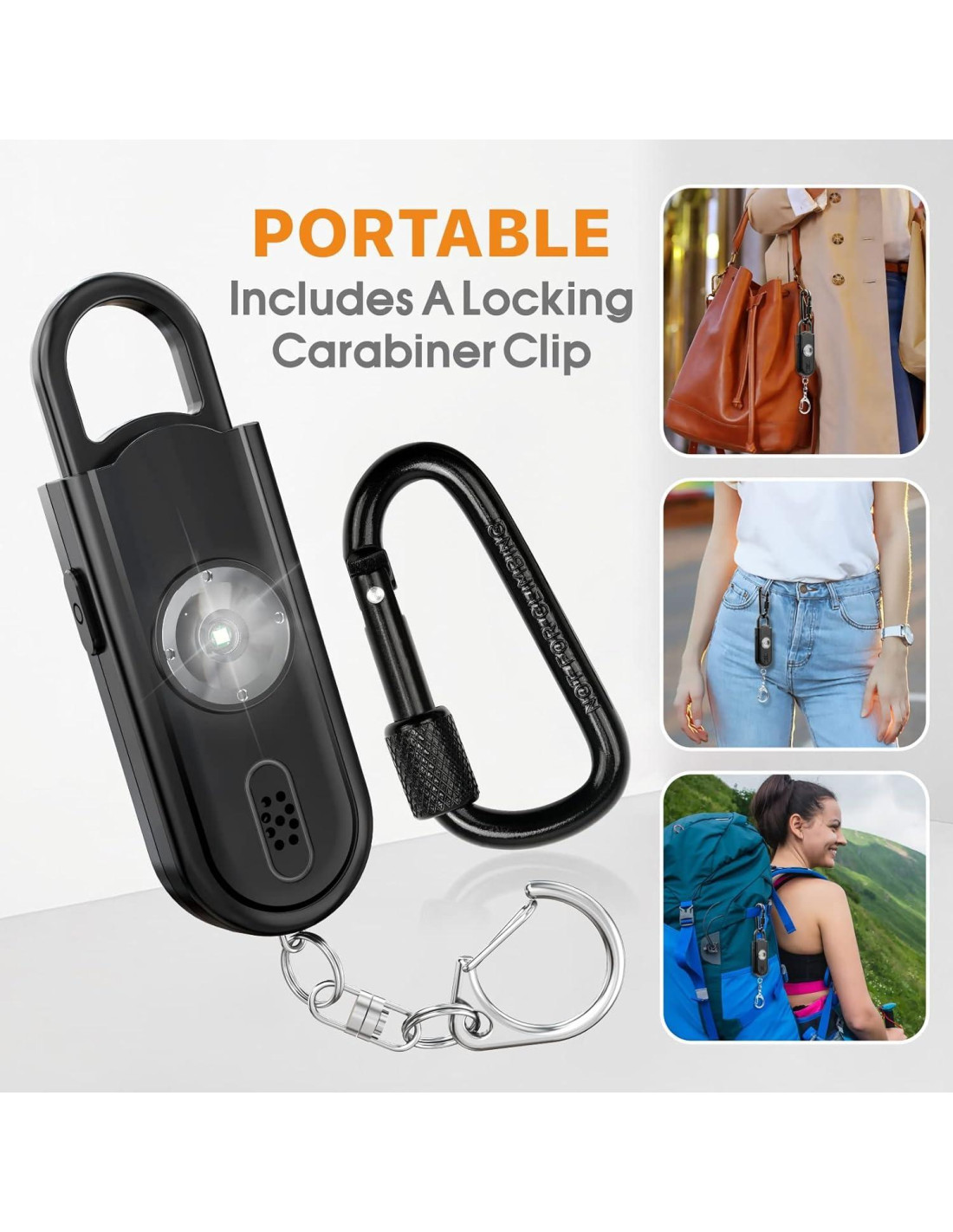 - ALARMA DE EMERGENCIA DE SEGURIDAD DE 130 dB: Esta alarma de seguridad personal compacta emite 130 dB para desorientar a los atacantes y alertar a otros. Su ruido fuerte proporciona una oportunidad de escape y señala a las personas cercanas para que ayuden, manteniéndote a ti y a tus seres queridos protegidos