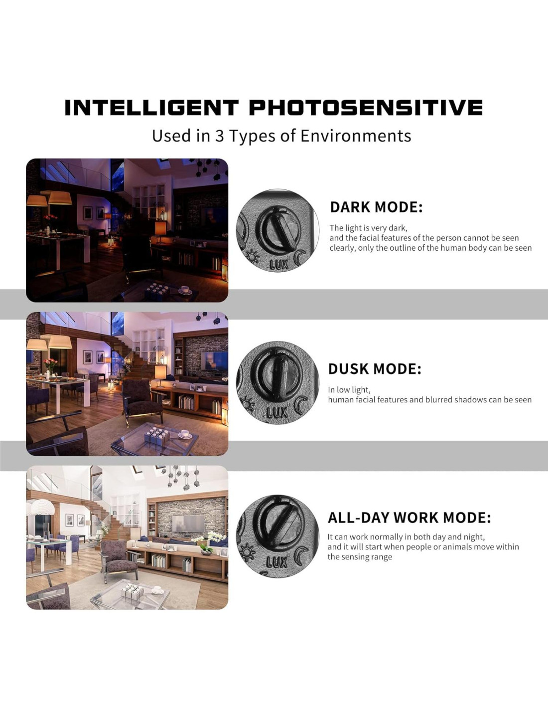 - [Alta Sensibilidad, Enciende Antes de la Llegada] El sensor de movimiento PIR es adecuado para iluminación de seguridad de día y noche. Distancia máxima de detección 40 pies (12,19 m), el sensor instalado en la esquina puede controlar las luces exteriores temprano, rango de detección de 180 iluminación sin puntos ciegos. La altura de montaje recomendada del sensor es de aproximadamente 6 - 9 pies (1,83 - 2,74 m) para obtener el mejor rango y distancia de monitoreo.
