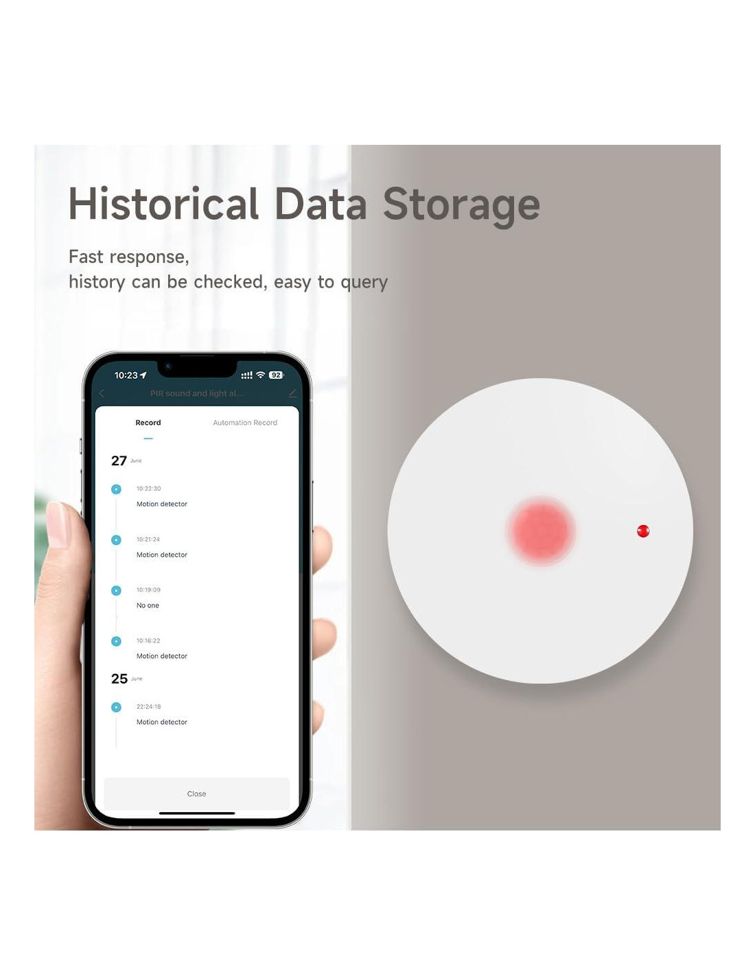 - [Buen Rendimiento] Este dispositivo de detección de movimiento humano funciona con un ángulo de 105 y el rango de detección de luz es de 0-1000LUX, informa en tiempo real a tus smartphones con la App Smart Life Tuya. Consulta el historial en la App para controles inteligentes y proteger tu propiedad familiar. Suficiente para satisfacer tus necesidades diarias, puedes ordenar sin preocupaciones.