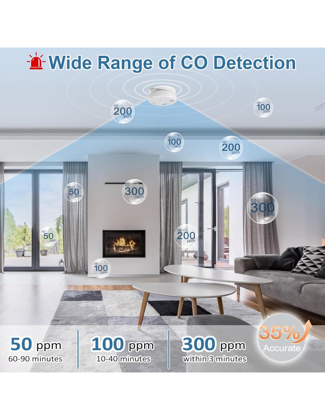 - Sensores electroquímicos de alta precisión: Los detectores de monóxido de carbono pueden monitorear eficazmente el gas monóxido de carbono según los sensores electroquímicos. Cuando el gas monóxido de carbono alcanza un cierto estándar, la alarma de CO te alertará. Esto reducirá el riesgo de intoxicación por monóxido de carbono en tu hogar.