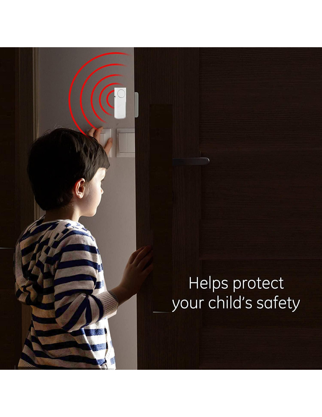 - Diseño Inteligente: La alarma y la tira magnética están separadas por más de 0.39 pulgadas (10 mm) y sigue sonando hasta que cierre la puerta (haciéndolas conectar) o la apague (cambiando al botón "APAGADO").