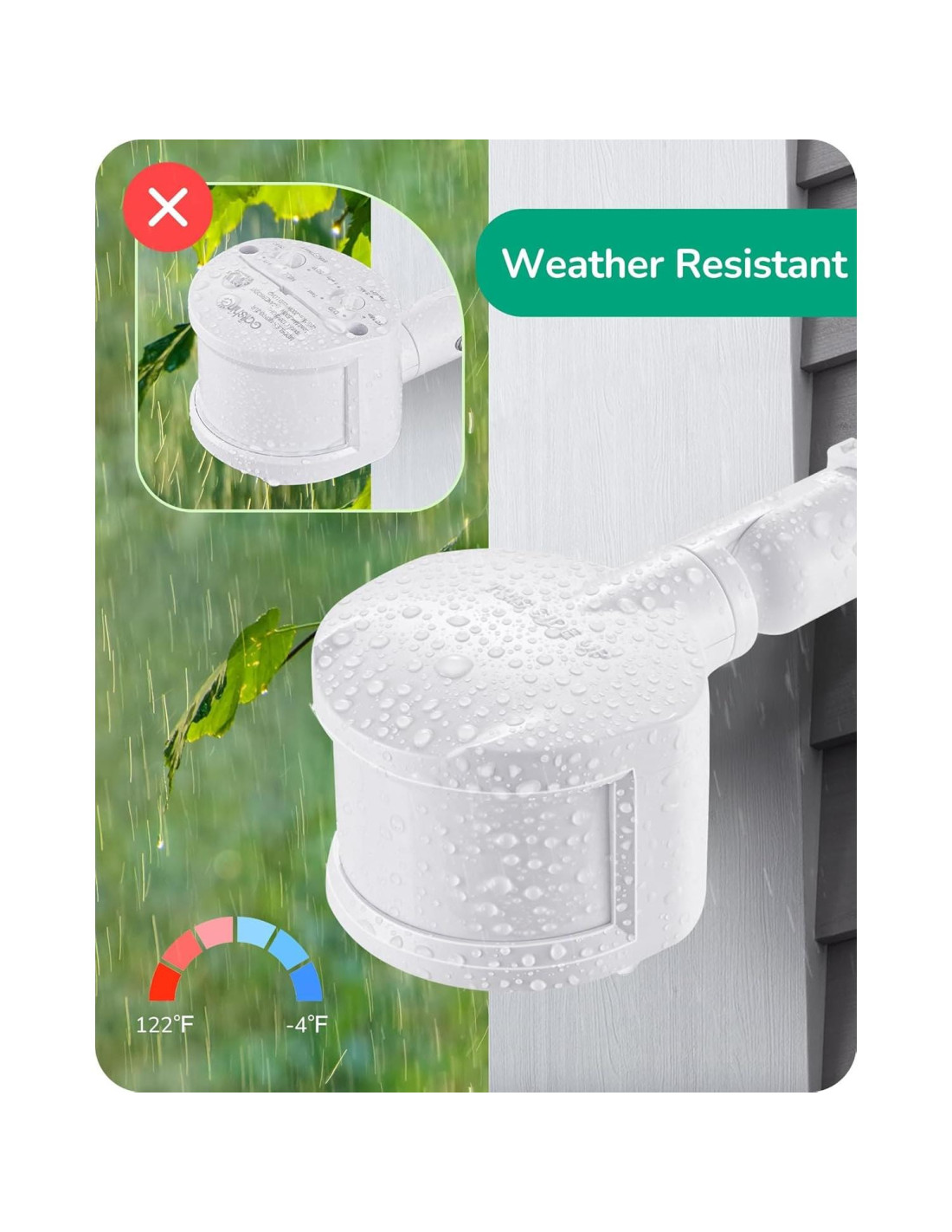 - [Cuello de Sensor Ajustable] Con 180 grados verticalmente, 360 grados horizontalmente, cuello de sensor ajustable, disponible para ajustar el sensor de movimiento a diferentes ángulos según sus necesidades, este interruptor de sensor de movimiento permite una monitorización precisa del área sin ser activado accidentalmente.