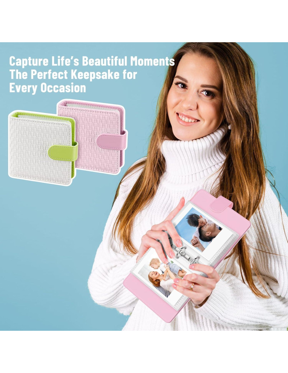 Aphlos Paquete de 2 Álbumes de Fotos Mini para Fotos de 2x3 Pulgadas, Álbum de Fotos de Gran Capacidad de 40 Páginas para Fujifilm Instax Mini 12/9/SE/7+/40/90/EVO, Polaroid Hi-Print/Snap Touch/HP Sprocket (Patrones Tejidos)