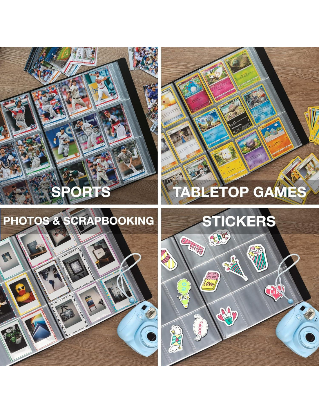 - Versátil: Cada protector de hoja sostiene fotos de hasta 2.6 x 3.5 pulgadas (6.6 x 8.9 cm) por ambos lados, perfecto para Instax Mini y Polaroid Snaps. El tamaño se adapta a la mayoría de las tarjetas de intercambio deportivas, Pokeman y coleccionables de K-pop