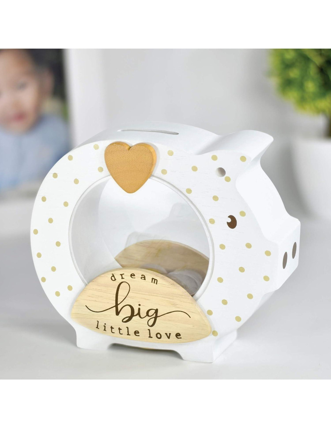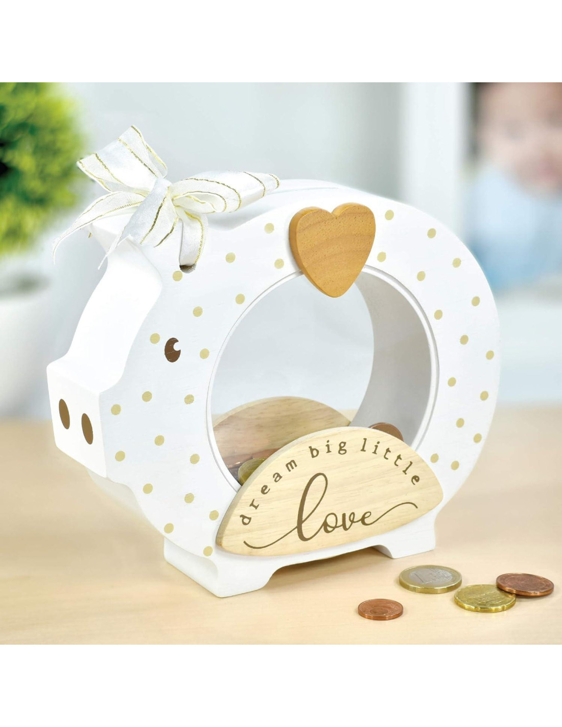 - REGALO Y DECORACIÓN: Ahorrar es divertido con esta clásica alcancía de madera. Perfecta para la guardería de cualquier bebé o la decoración de la habitación de los niños y un regalo adorable para todas las ocasiones especiales - para Bautismos, Cristianos, Cumpleaños.