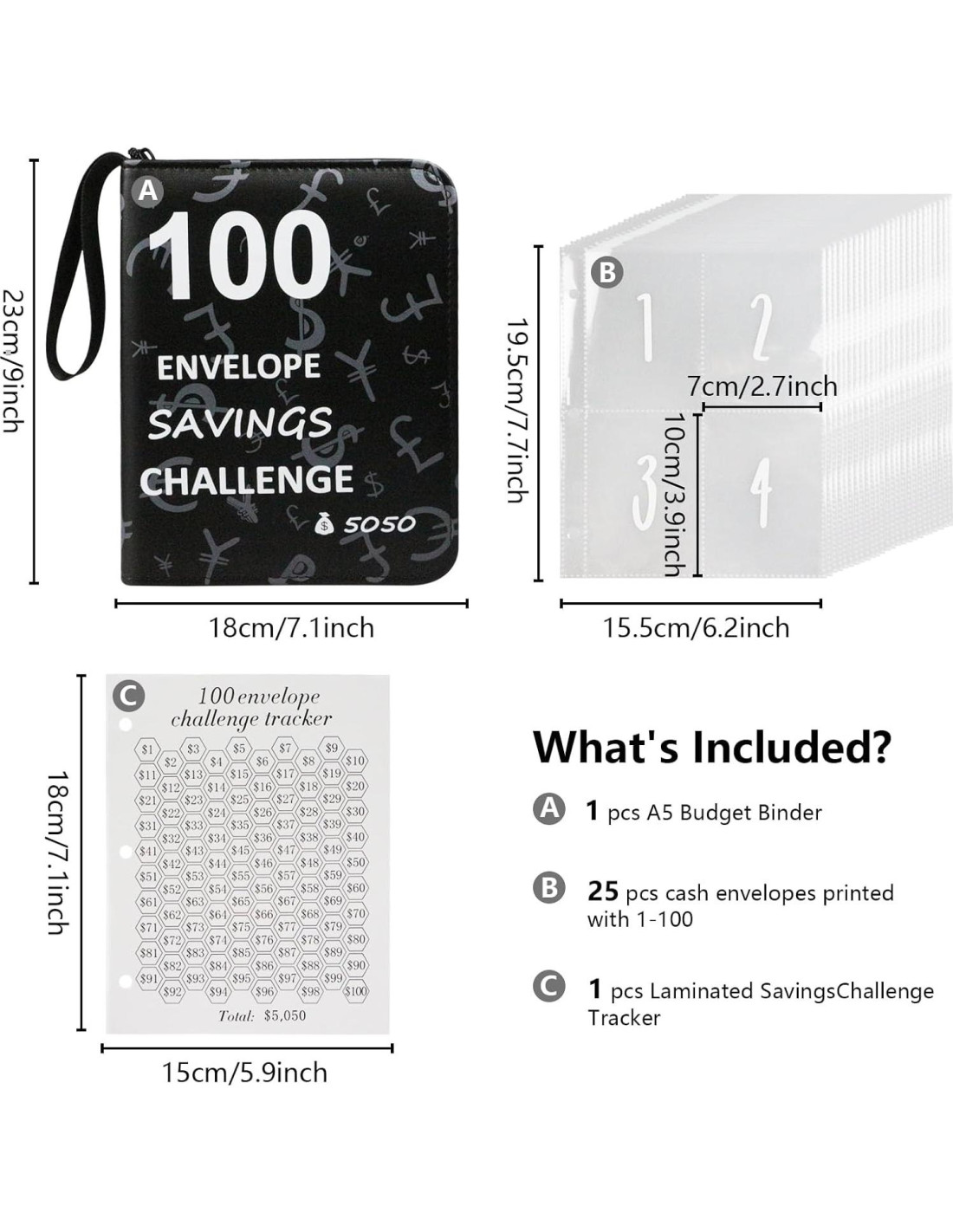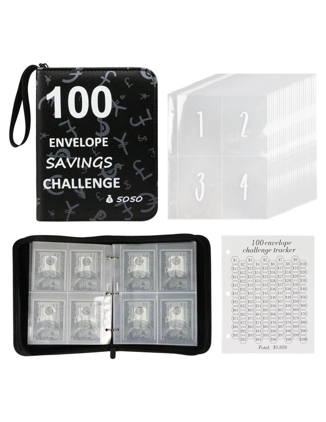- Uso Flexible: Con 25 sobres de efectivo pre-numerados de 3 agujeros que van del 1 al 100, puedes poner fácilmente la cantidad correspondiente de dinero en el sobre designado cada día para completar el desafío de cambio suelto. Los dos tipos de rastreadores, laminados y no laminados, brindan flexibilidad en cómo eliges usar el organizador de ahorros, permitiéndote lograr mejor tus objetivos de ahorro y presupuesto.