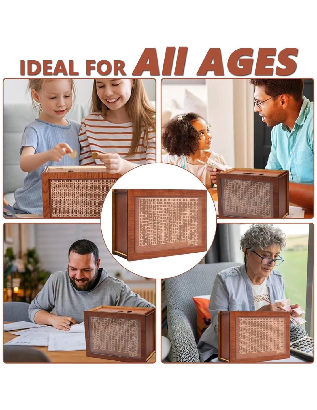 - Regalo Perfecto: Esta caja de dinero de madera es muy adecuada para todas las edades. Como una variedad de regalos para vacaciones o cumpleaños para tu familia, amigos o niños para desarrollar un buen hábito de ahorro, esta alcancía debe ser una elección perfecta, es la mejor opción para todo tipo de selección de regalos.