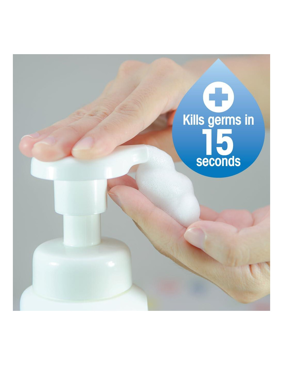 - Desinfectante de Manos Espumoso: Espuma ligera que se absorbe rápidamente en la piel y nunca se siente pegajosa, dejando las manos limpias y frescas.