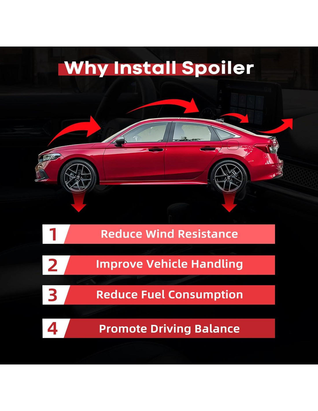 - 100% Compatible: Este alerón trasero es compatible con el Honda Civic sedán 2022, 2023, 2024, 2025 y 2026.