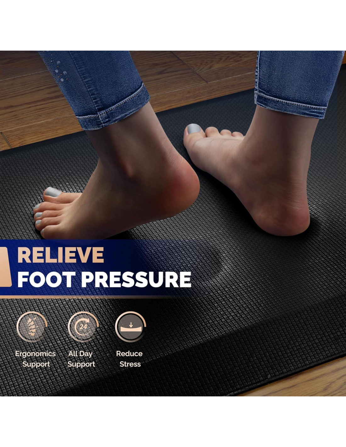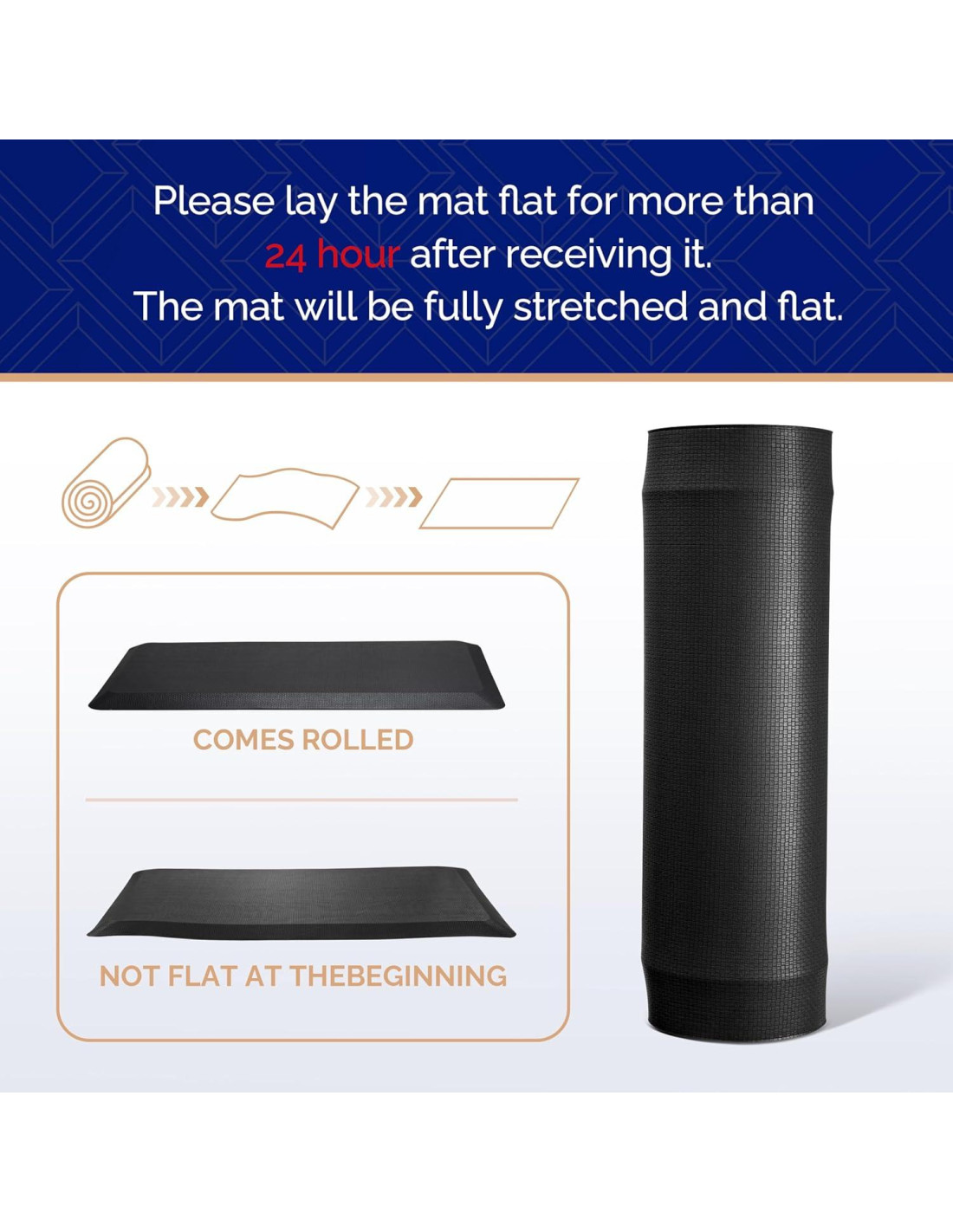 - [Seguridad] - Esta alfombra antifatiga tiene un diseño antideslizante en la parte inferior, bordes biselados de bajo ángulo y sin costuras que se estrechan hacia el suelo, lo que proporciona un mejor agarre para la alfombra y no es fácil de mover. La superficie texturizada y el diseño de borde biselado suave ayudan a prevenir resbalones y tropiezos.