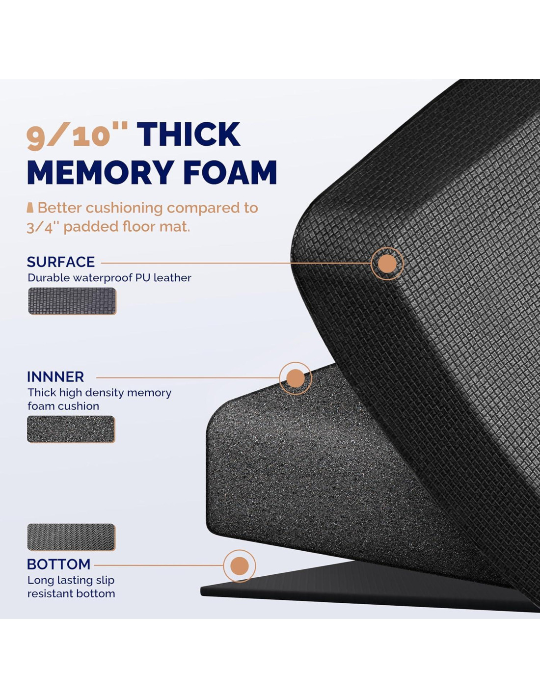 - [Superficie de ALTA CALIDAD] - La superficie de esta alfombra antifatiga es de cuero PU, lo que asegura que la superficie de la alfombra no se deformará con el uso y es altamente resistente a perforaciones y desgarros. El uso a largo plazo no causa agrietamiento ni daño en la superficie.
