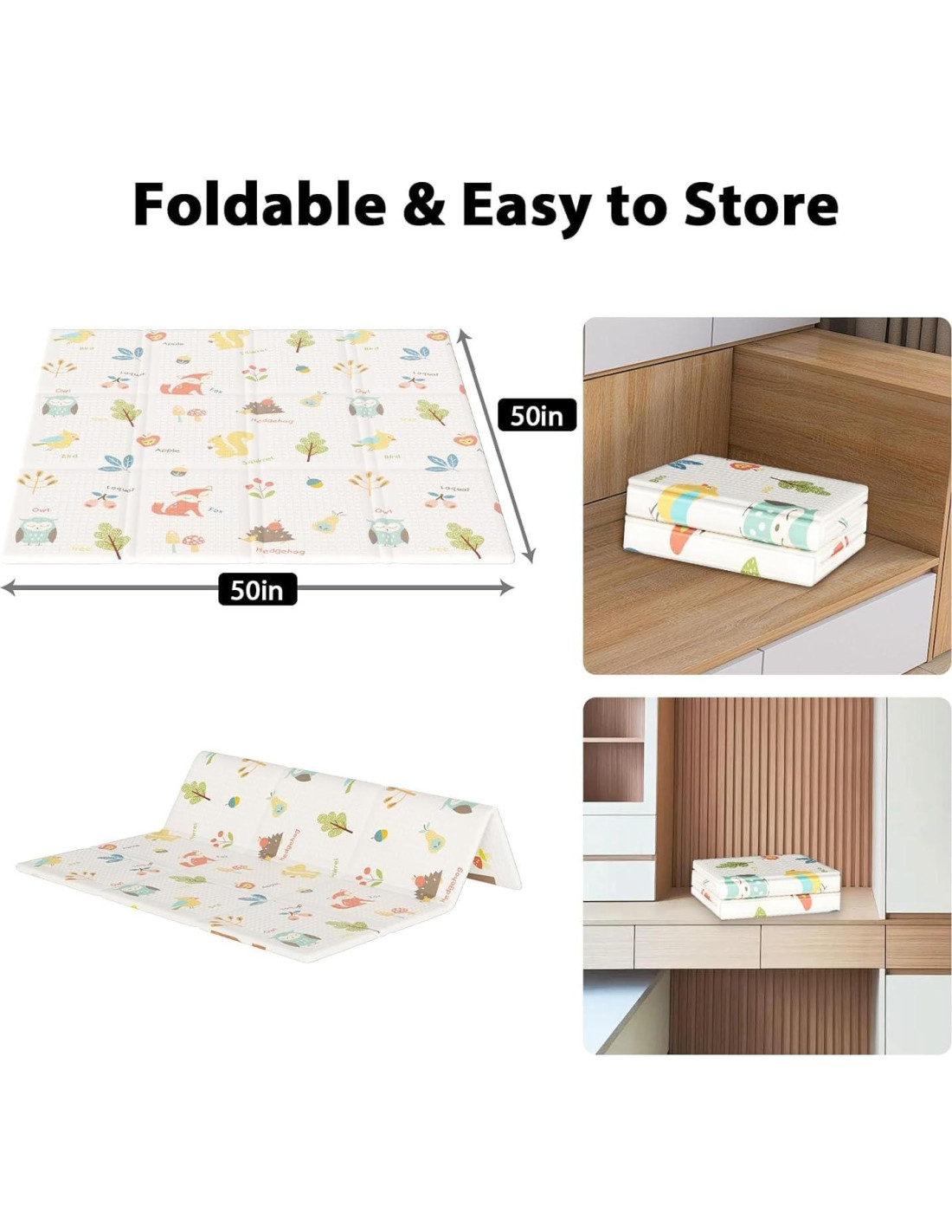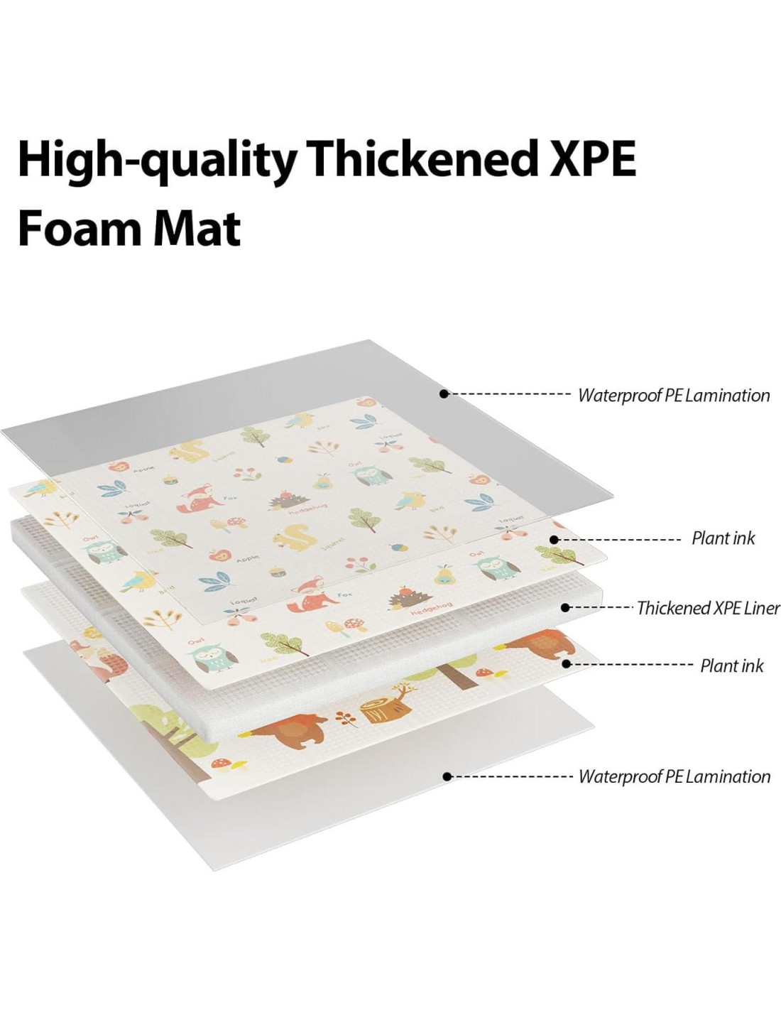 - Diseño de Patrón Doble Cara - Ambos lados de la alfombra se pueden usar, ambos lados están impresos con diferentes patrones de animales lindos, estos patrones adorables son fáciles de estimular la curiosidad del niño, para ayudar al bebé a conocer más cosas nuevas.