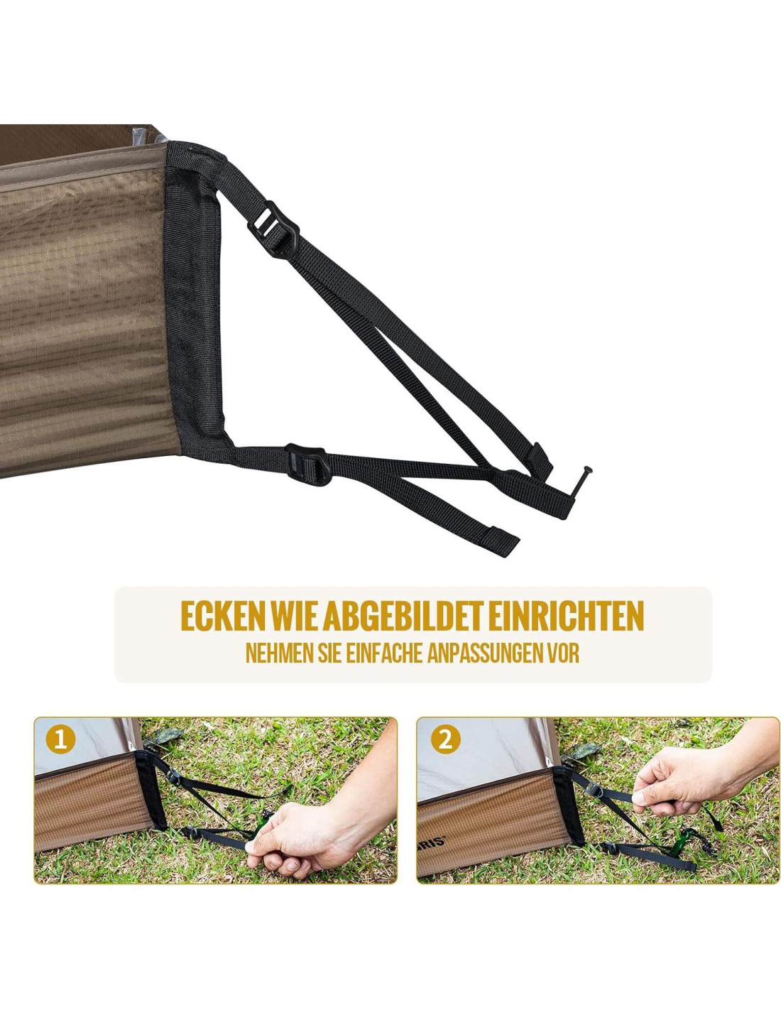 - Fácil de Montar: La cinta triangular en cada esquina permite ajustes rápidos y suaves para un ajuste apretado y estable, asegurando que la Huella de Tienda Desmontable se mantenga erguida y segura. La Alfombrilla de Tienda Portátil ofrece estabilidad confiable en cualquier entorno al aire libre