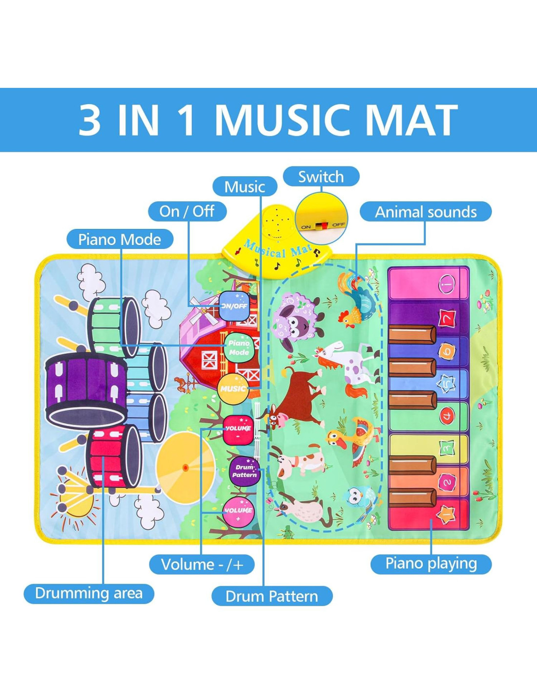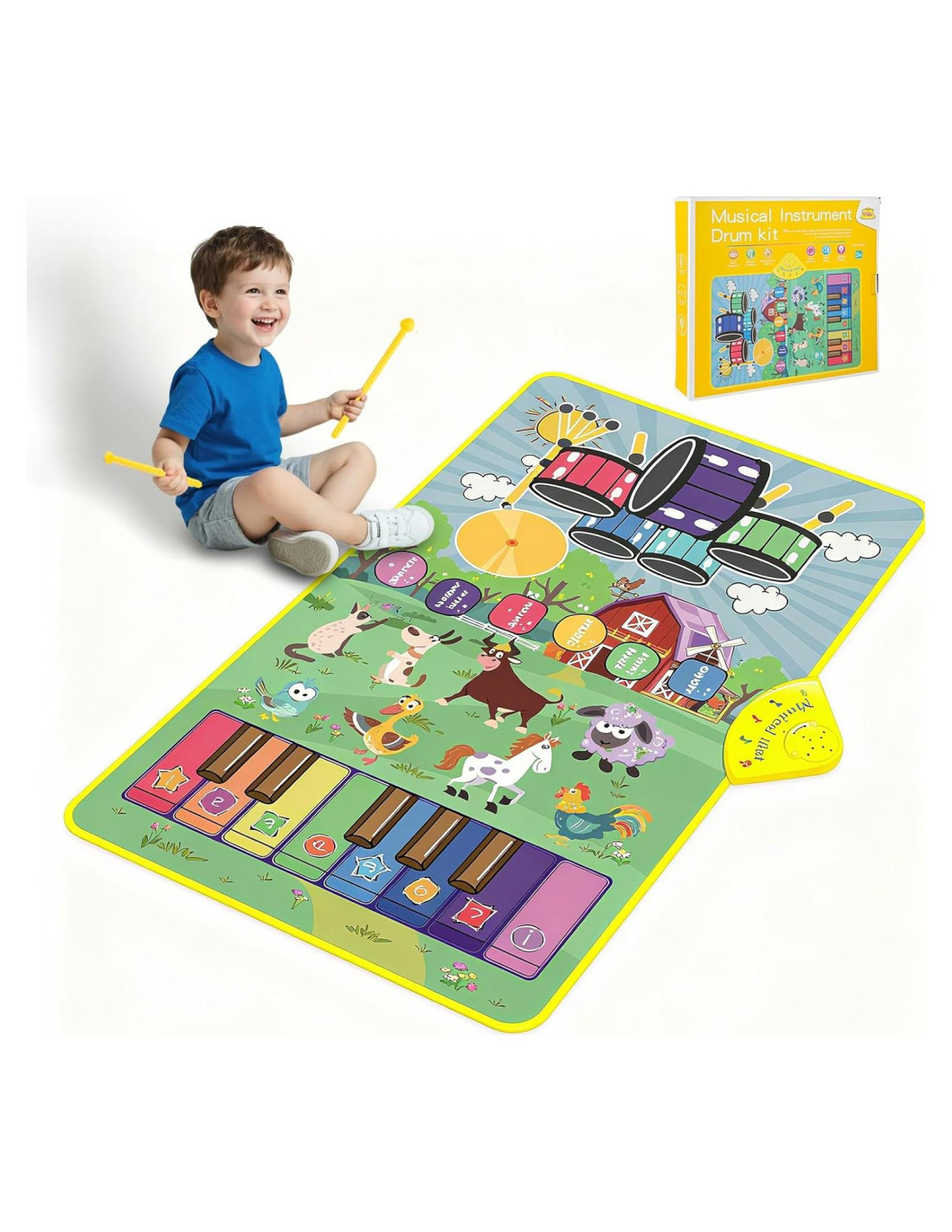 - TRIPLE DIVERSIÓN EN UNO: Esta alfombra musical combina un set de batería realista, botones de sonidos de animales y teclas de piano, permitiendo a los niños alternar entre tocar percusión, identificar animales a través de sonidos y crear melodías sin esfuerzo, ofreciendo entretenimiento diverso.