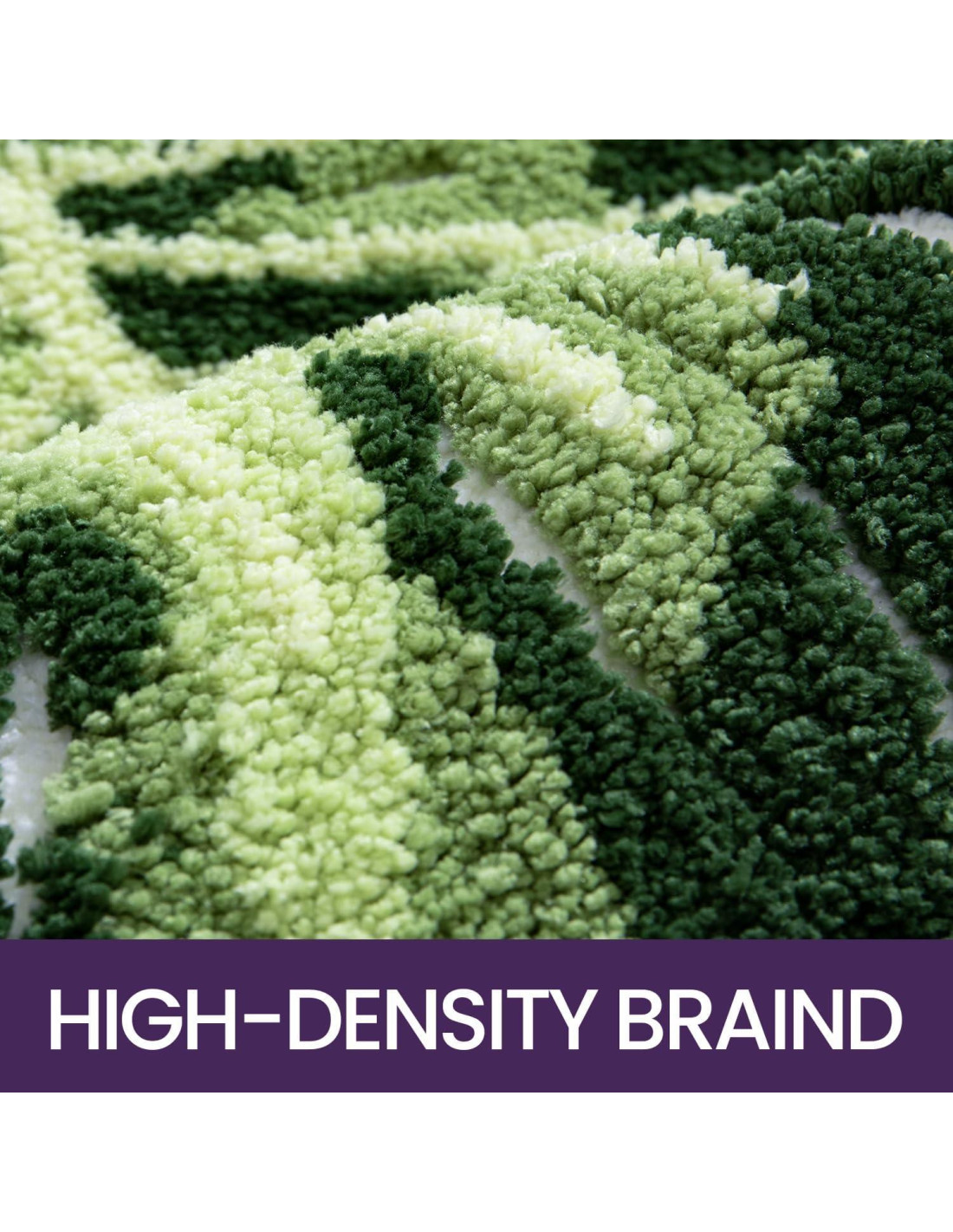 - Respaldo Antideslizante: Las alfombrillas de baño verdes tienen un respaldo de textura de goma TPR de alta calidad, que proporciona durabilidad y previene deslizamientos, por favor coloca tu alfombra de baño en un piso seco para maximizar sus propiedades antideslizantes.