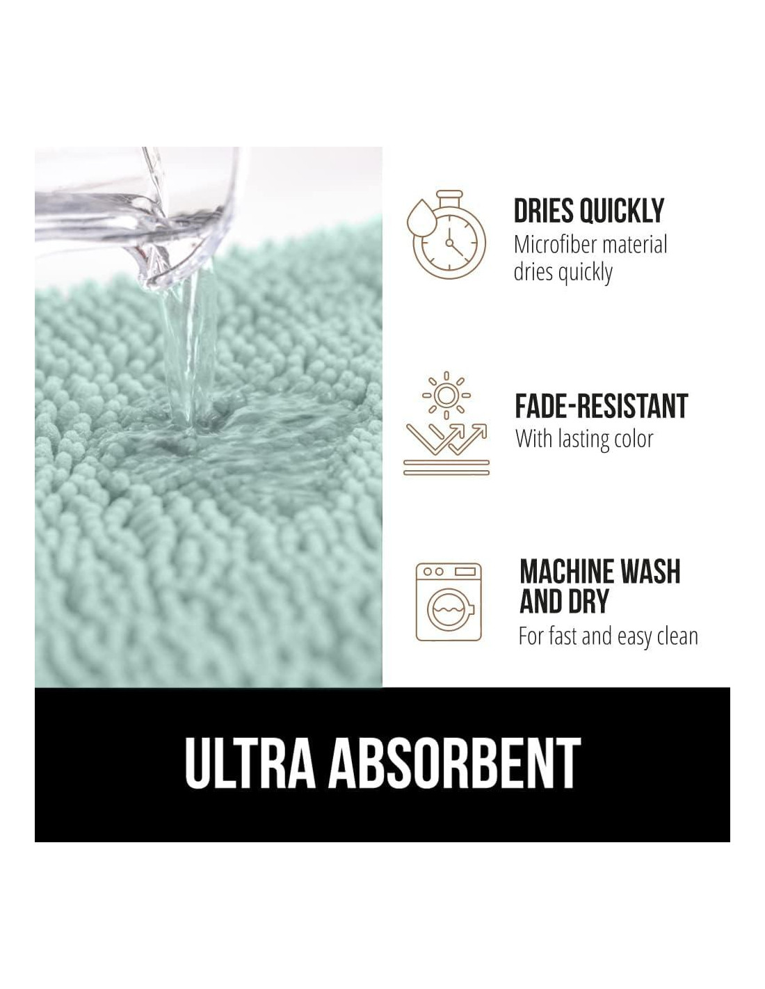 - ULTRA ABSORBENTE: nuestra alfombra de baño más absorbente; la densa pila de chenille captura la humedad adicional ayudando a mantener tus pisos limpios al salir de la bañera, ducha o al estar de pie en el lavabo.