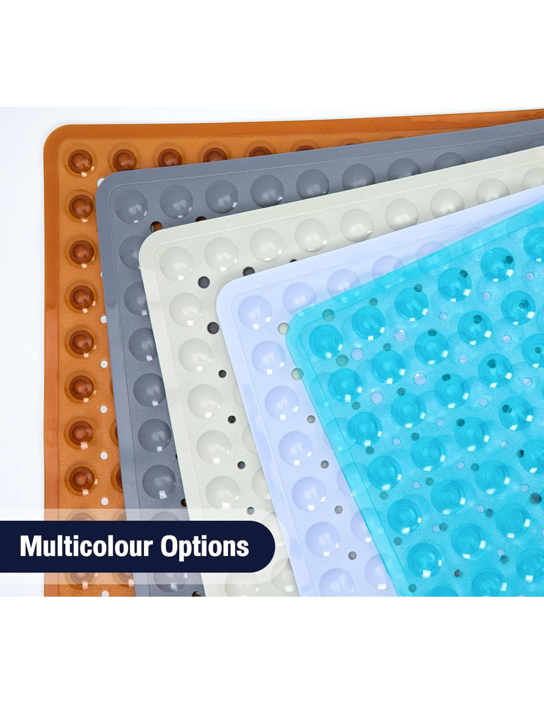 - Fácil drenaje de agua: Cientos de agujeros de drenaje permiten que el agua fluya fácilmente por debajo de la alfombrilla y hacia el desagüe, ayudando a prevenir la acumulación de agua y jabón debajo de la alfombrilla durante las duchas.