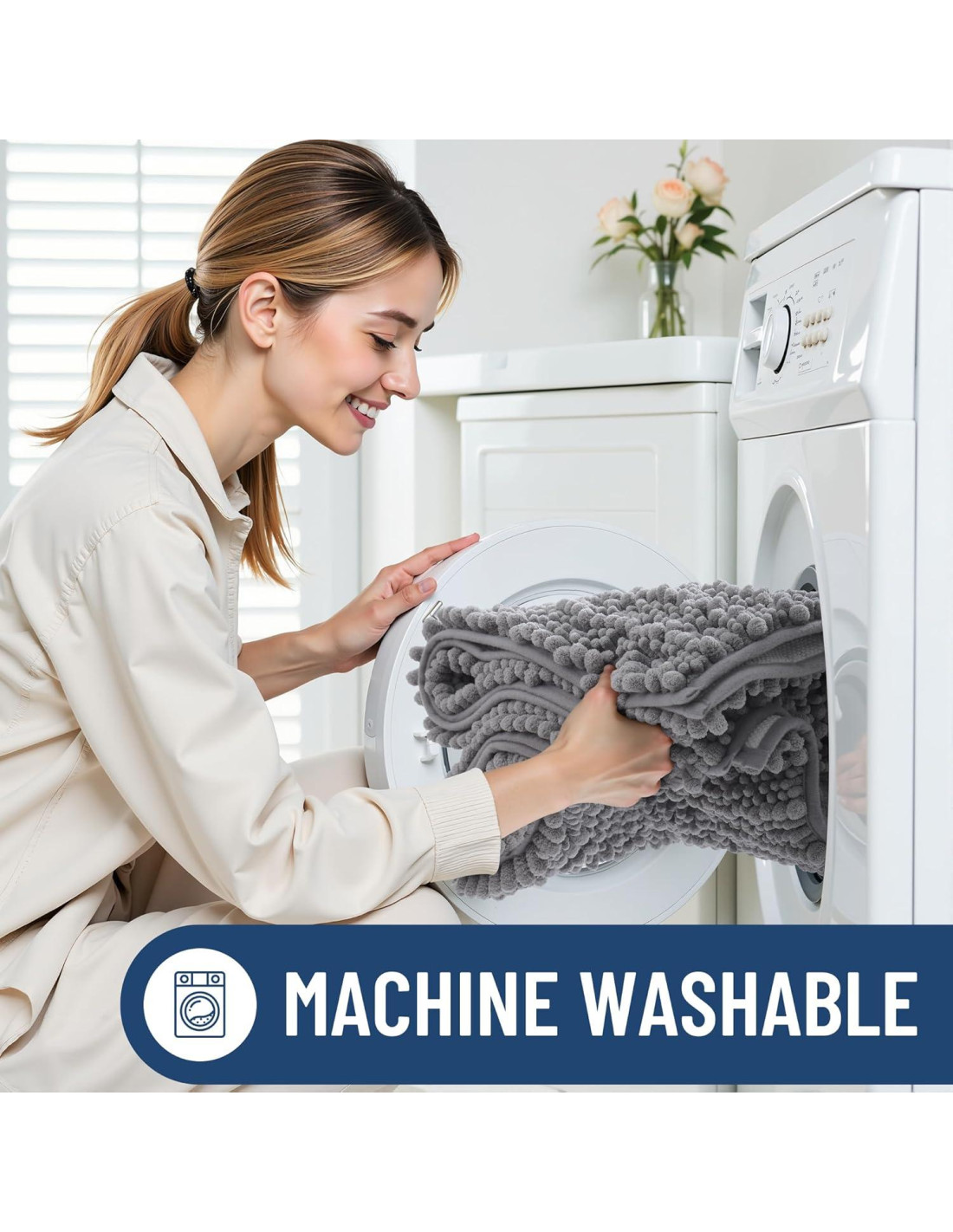 - [Respaldo antideslizante] Nuestra alfombrilla de baño cuenta con un respaldo de goma texturizado para estabilidad. A diferencia de los materiales tradicionales, nuestro respaldo de goma TP está diseñado para soportar lavados repetidos sin comprometer su integridad. ADVERTENCIA: El agua debajo de la alfombrilla de baño puede hacer que se deslice. ¡Mantenga la parte inferior de la alfombrilla de baño seca!