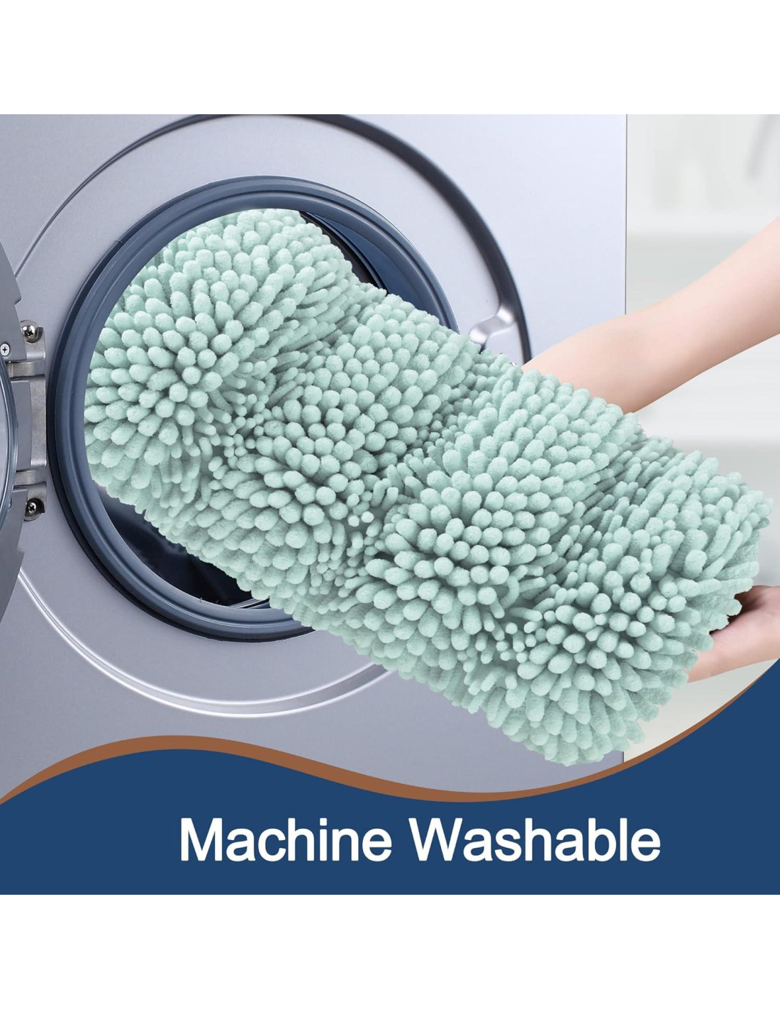 - LAVABLE A MÁQUINA Y SECADO: Nuestro conjunto de alfombrillas de baño es muy fácil de limpiar, simplemente lave a máquina en frío con detergente suave, seque a baja temperatura y sacuda para restaurar el esponjamiento, o simplemente recoja y sacuda la alfombrilla pequeña para refrescarla y darle nueva vida a la pila de chenilla. El material de microfibra suave no se encogerá ni se volverá áspero incluso después del lavado, lo que mantendrá su alfombrilla de ducha igual durante mucho tiempo. Los colores se mantienen vibrantes incluso después de muchos lavados.