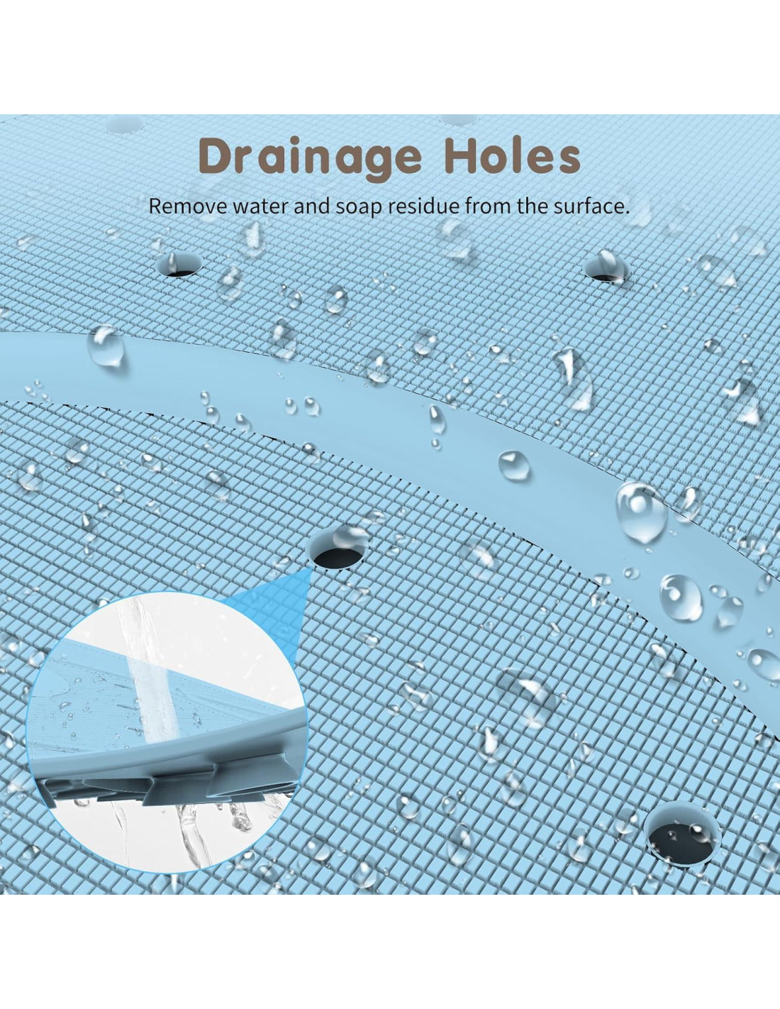 - CON ORIFICIOS DE DRENAJE: Con muchos orificios pequeños en toda la superficie, evitando que el agua y los residuos de jabón se acumulen alrededor del producto. Nuestra alfombra de baño antideslizante para niños con orificios de drenaje dirigirá el agua y cualquier residuo lejos de la alfombra y hacia el desagüe.