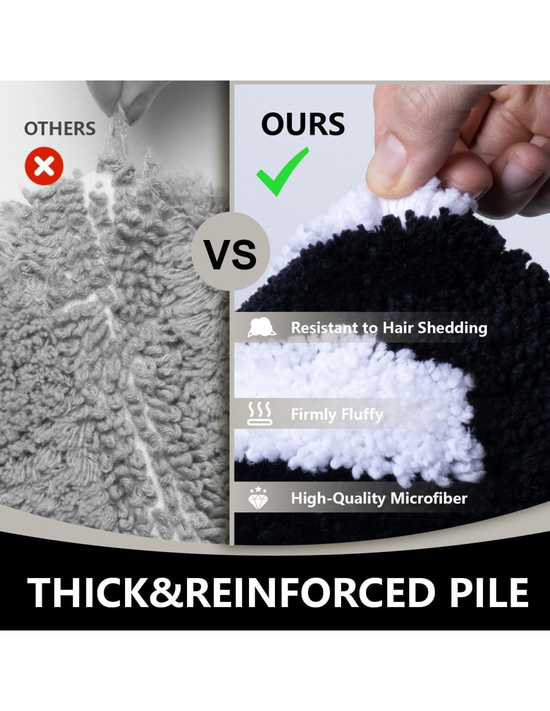 - Lavable a máquina y sin pérdida de fibras: Esta alfombra lavable se puede lavar a máquina repetidamente, se recomienda usar agua fría y detergente suave, y secar a baja velocidad o colgar para secar. Esta divertida alfombra es duradera y de larga duración. Cada felpa está firmemente fijada en el respaldo con un excelente proceso de tejido, no te preocupes por la felpa de la alfombra de baño negra que se caiga. Confía en KOEXM para proporcionar las alfombras de baño de la más alta calidad.