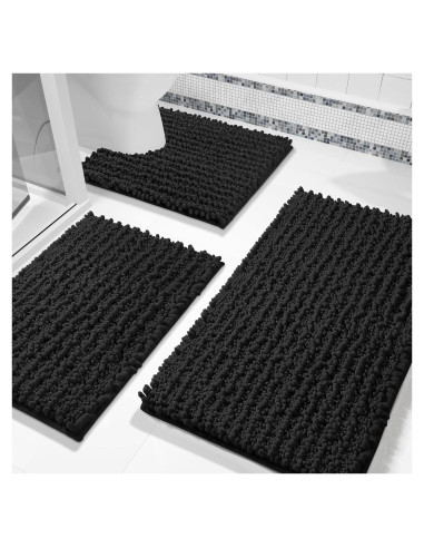 - [Comodidad y Soporte Lujoso] : Pise sobre chenille grueso y lujoso en este conjunto de alfombrillas de baño de 3 piezas para un acolchado instantáneo y suavidad bajo los pies. Disfrute de la comodidad similar a un spa cada vez que salga de la bañera o la ducha
