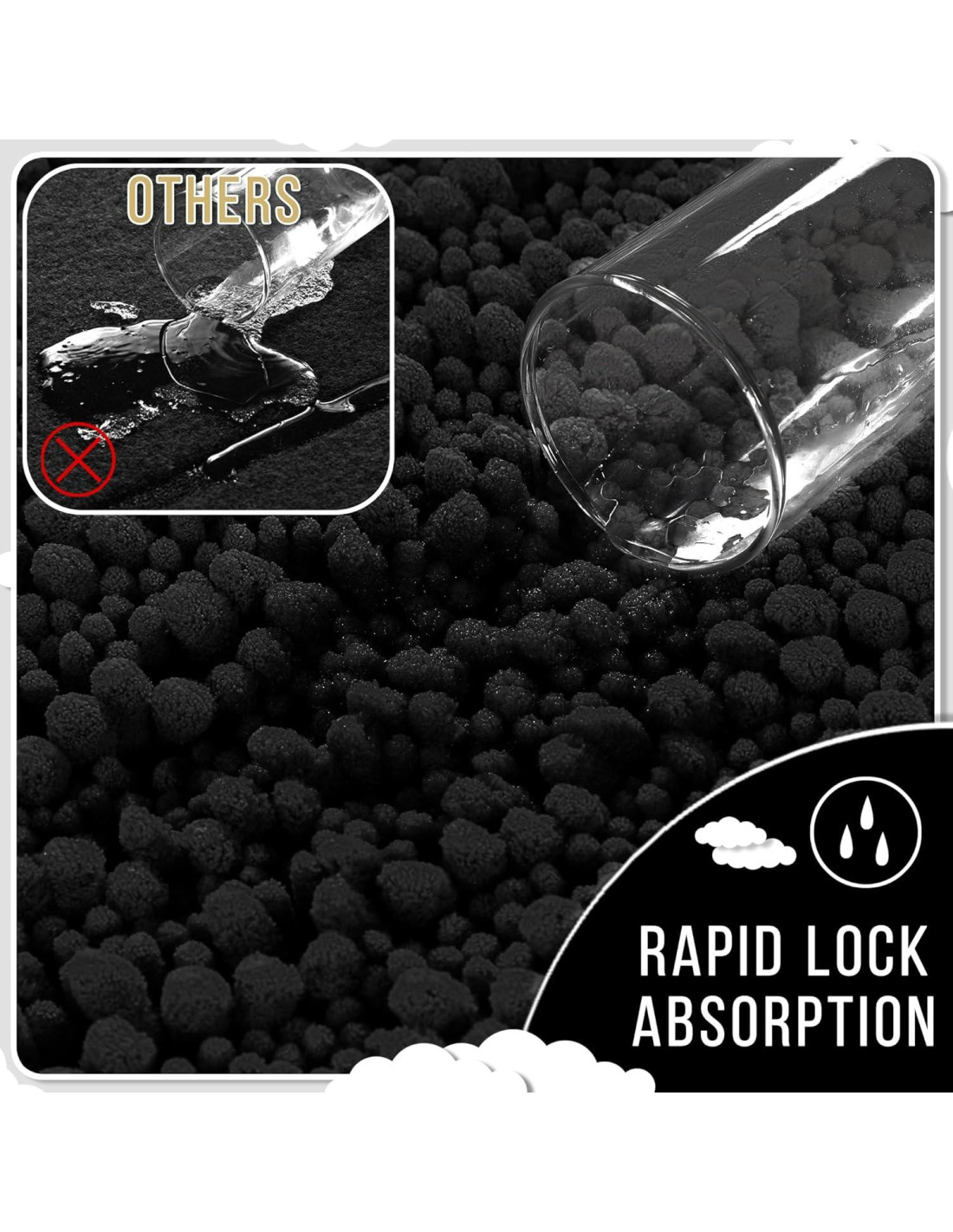 - [Ultra Absorbente y de Secado Rápido Chenille] : Nuestro conjunto de alfombrillas de baño absorbe instantáneamente el agua de duchas y bañeras (tasa de absorción del 97%), mientras que sus fibras de chenille con canales de aire verticales aseguran un secado rápido, previniendo pisos mojados y manteniendo el baño fresco