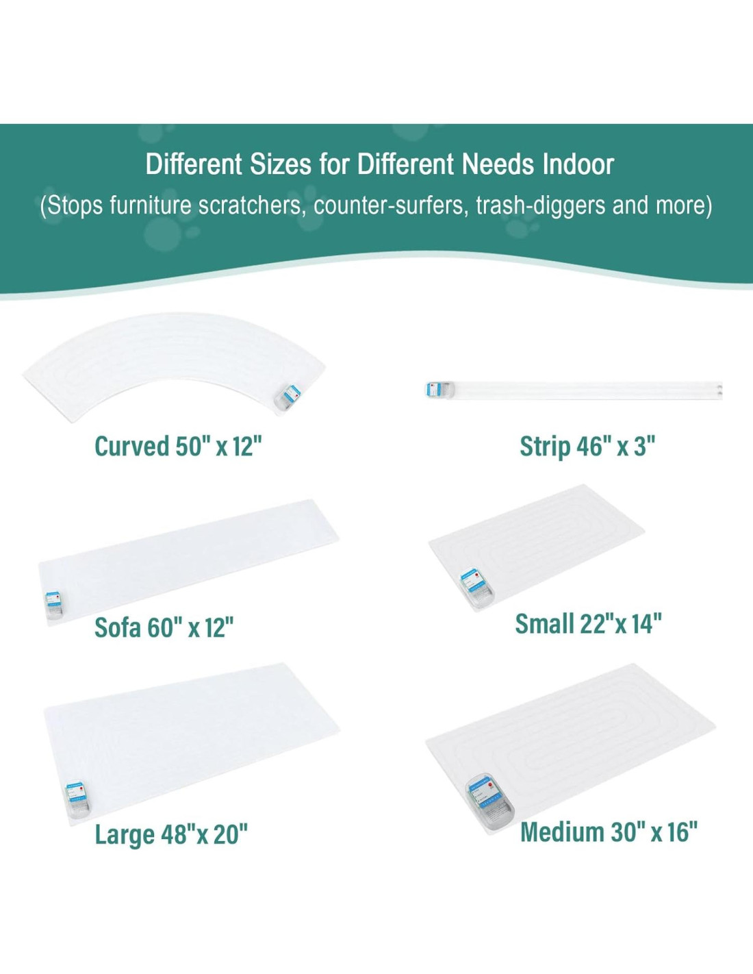 - [GRAN VALOR PARA PROTEGER EL HOGAR] Alfombra de choque para mascotas con eficiencia de detección mejorada mantiene a perros y gatos fuera de muebles, encimeras, sofás, mesas, escritorios, sillas, sillones, puertas, umbrales de puertas, pisos, pasillos, camas, escaleras, plantas, alfombras, centros de entretenimiento, área de actividad para bebés, motocicletas, coches, puertas, chimeneas, estufas, de pie, árbol de Navidad y cubos de basura, más eficiente que la mayoría de otros repelentes para mascotas, disfruta de un mejor tiempo con tus amigos peludos.