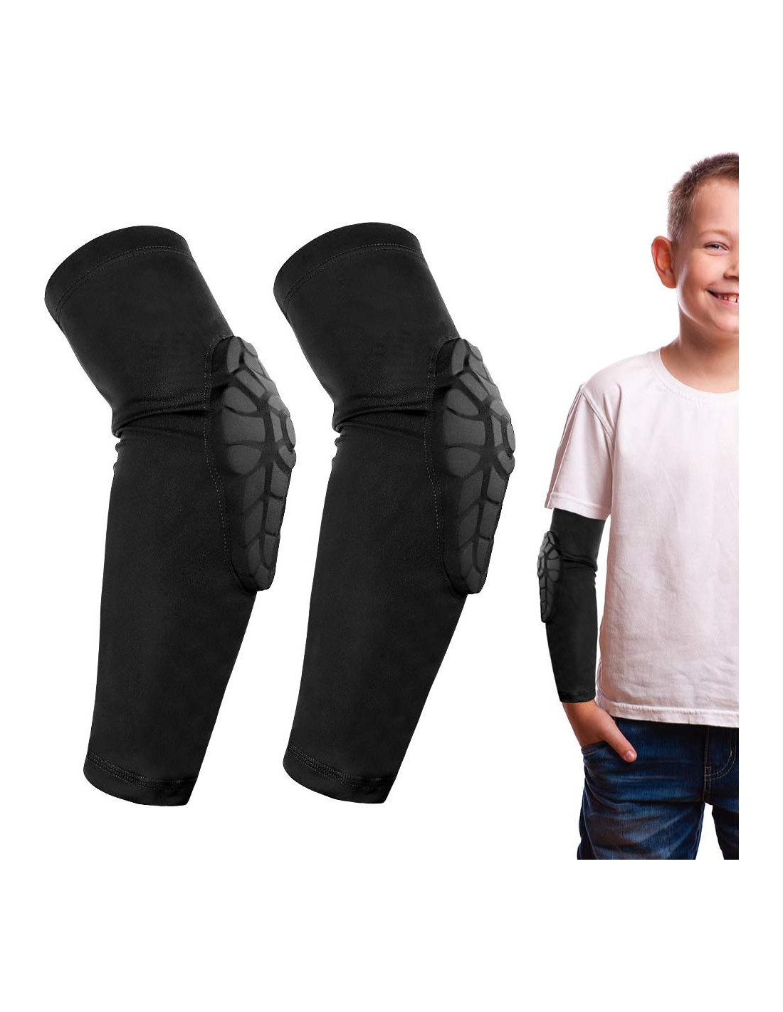 - Almohadillas de codo de panal multifuncionales: Con tejidos transpirables, ligeros y suaves, ajuste elástico alto, tecnología de diseño exquisita, rápida transpiración y secado rápido. Un protector útil PARA niños/Jóvenes. Las almohadillas para las rodillas con protectores de muñeca están diseñadas para la seguridad de los niños al hacer deportes.