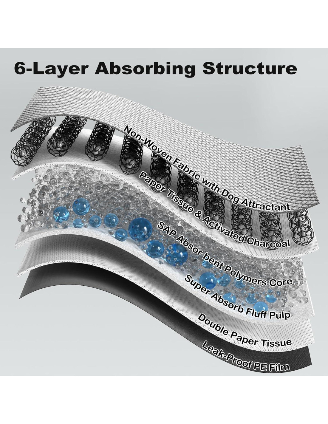 - Almohadillas para Orina Desodorantes de Carbón Activado: La tecnología de carbón activado incrustada en nuestras almohadillas para orina de perros neutraliza y elimina efectivamente olores fuertes, manteniendo su hogar fresco y libre de olores durante todo el día; ideal para el entrenamiento para ir al baño y manejar la incontinencia en mascotas