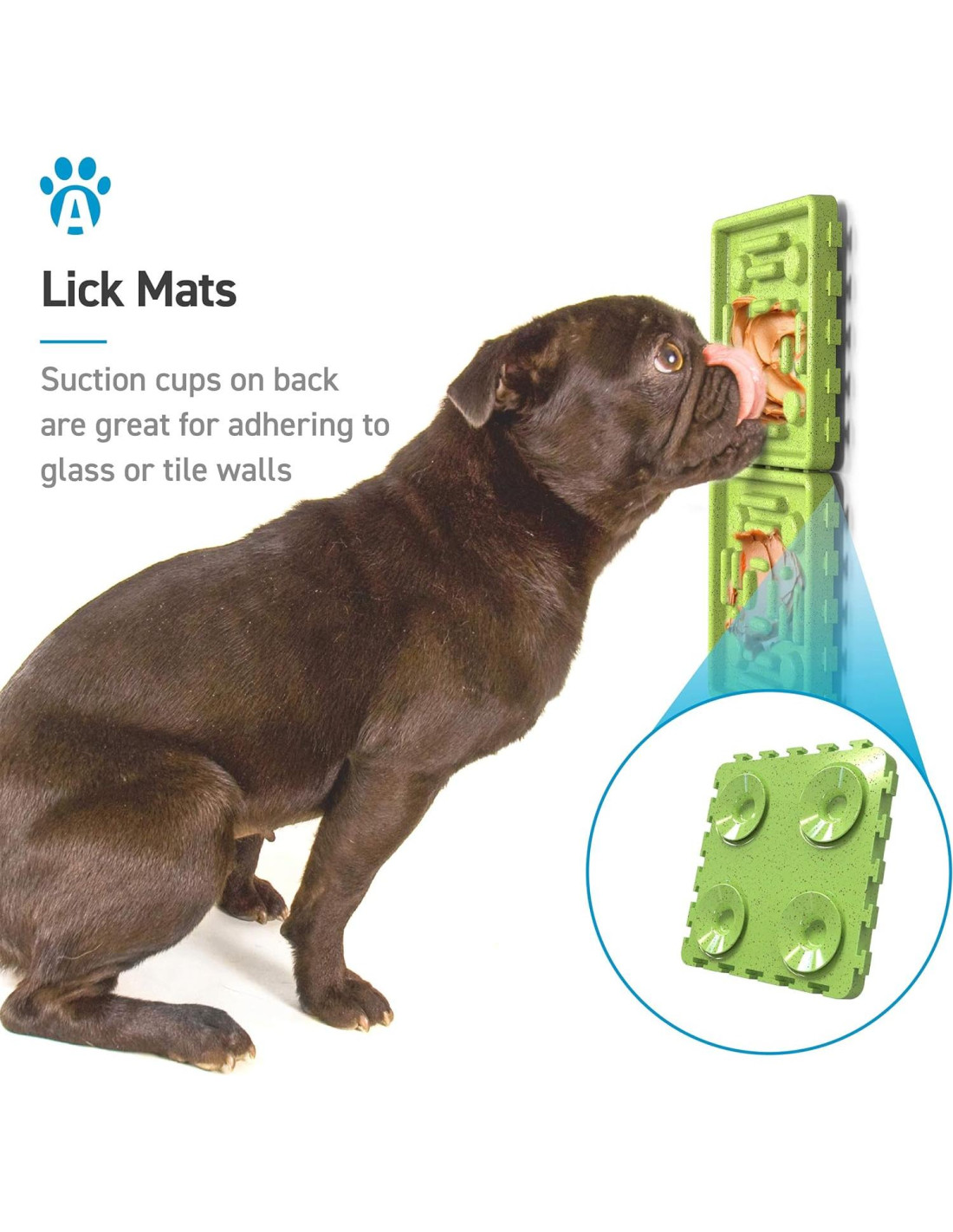 - DISPOSICIONES EN SUELO Y PARED - Diseño antideslizante para una posición segura en el suelo. Las alfombrillas de lamer también vienen con ventosas que se adhieren a paredes de vidrio o azulejos. Perfecto para distraer a su mascota durante duchas o acicalamientos.
