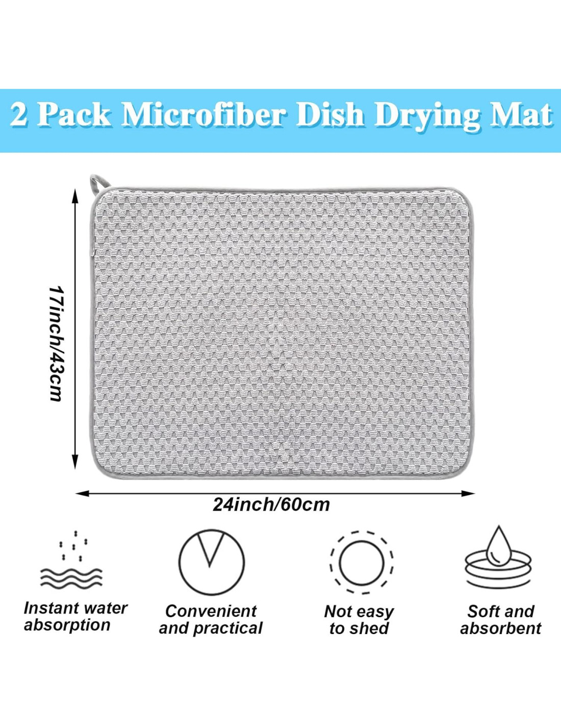 - Estos tapetes de vajilla grises son fáciles de limpiar, solo necesita usar agua fría para lavarlos, no se recomienda usar máquinas para limpiar, no se recomienda agua caliente, colgar para secar, y un tapete de drenaje de vajilla perfecto.