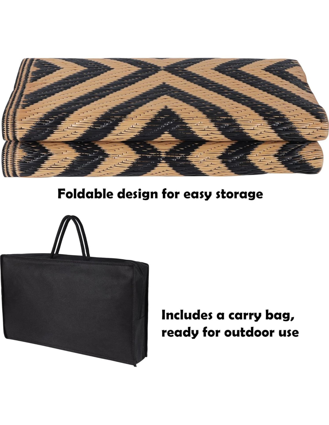 Esta alfombra de patio exterior es fácil de limpiar, simplemente barre la suciedad o rocíala con agua, y déjala secar al aire. Estas alfombras exteriores también se pueden plegar en un tamaño compacto para un fácil almacenamiento, viene con una bolsa de transporte para un fácil transporte, adecuada para viajes a la playa, salidas por la tarde, camping, picnic de barbacoa o un viaje por carretera en RV.