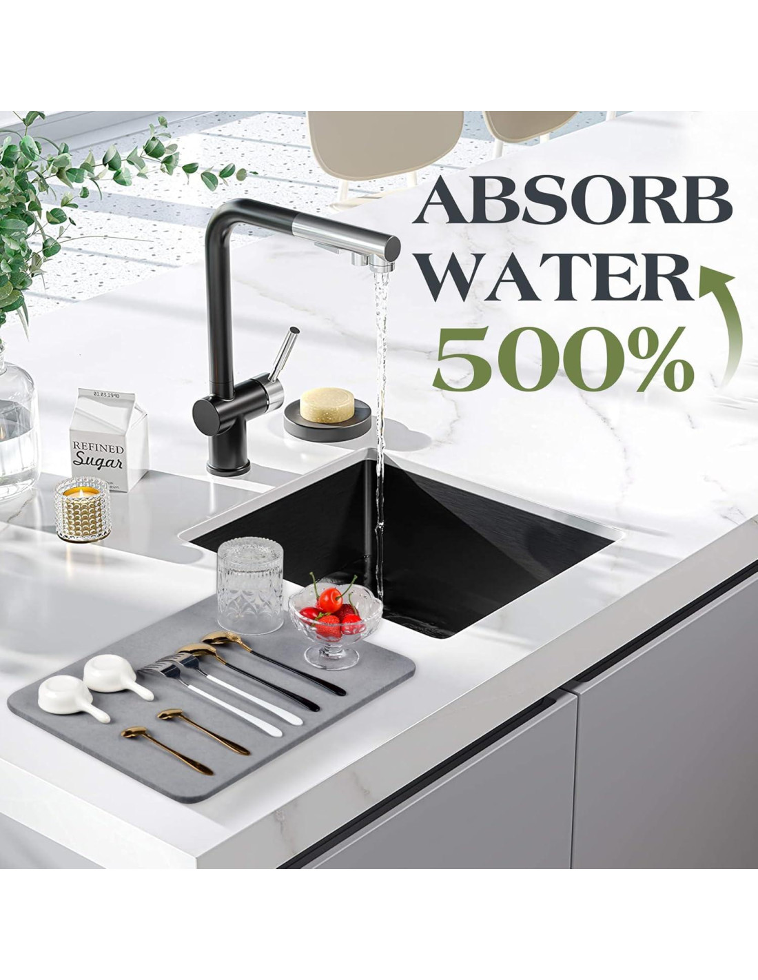 - Contenido del Paquete: Recibirás 1 pc 12 x 16 pulgadas alfombrillas de secado de platos de piedra + alfombrilla antideslizante + papel de lija. Nuestra alfombrilla de secado de cocina de piedra puede mantener propiedades excepcionales de absorción y absorción de humedad que evaporan rápidamente el agua de la superficie en segundos