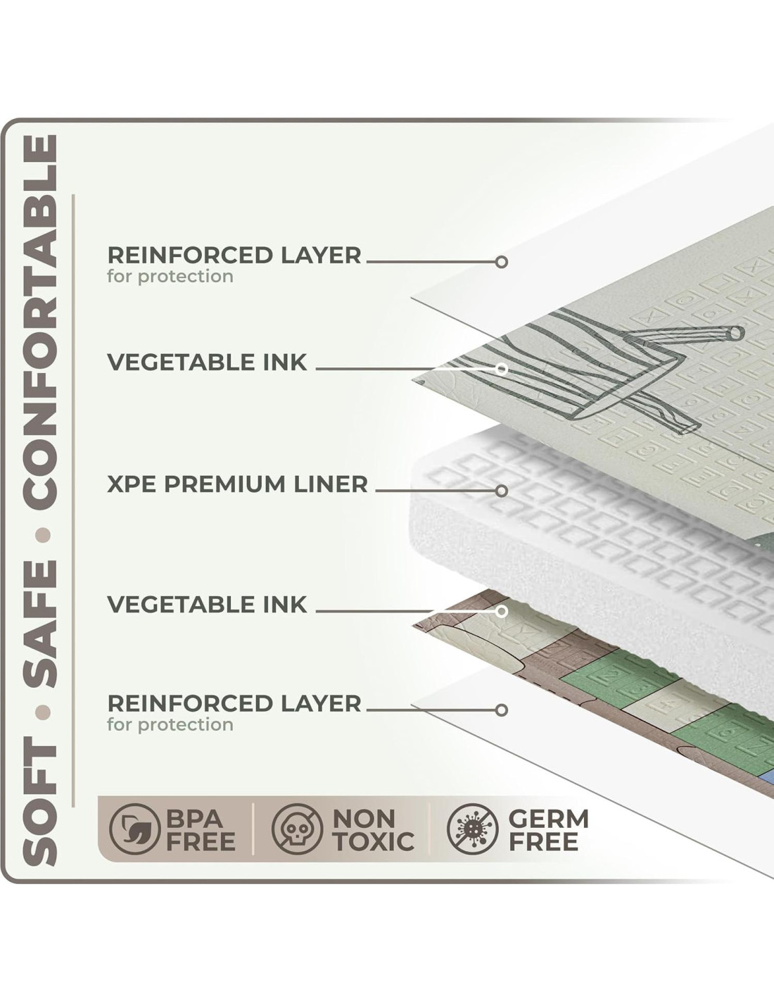 Invertimos en nosotros mismos en casa. Sorbus está dedicada a hacer una diferencia, una habitación a la vez. Nos esforzamos por hacer la vida en casa simple, intencional y rutinaria. Nuestra línea de productos está diseñada para trabajar con tu hogar en evolución, para que podamos crecer contigo. Sorbus se compromete a proporcionar nuevas perspectivas sobre diseño y función para acomodar tus necesidades y deseos en constante cambio. Con nuestra ayuda, puedes sentirte como en casa. La alfombra está diseñada con versatilidad en mente, haciéndola perfecta para uso tanto en interiores como en exteriores. Su diseño ligero y plegable permite un fácil transporte y configuración, ya sea que la estés colocando en la sala de estar, llevándola al parque o configurándola en el patio trasero. La superficie duradera e impermeable puede soportar diversas condiciones climáticas y es fácil de limpiar, asegurando un área de juego segura e higiénica dondequiera que vayas. Disfruta de un ambiente de juego cómodo y seguro, ya sea en interiores o exteriores. Experimenta el doble de diversión con el diseño reversible de la Alfombra de Juego Sorbus. Con dos patrones atractivos en cada lado, esta alfombra te permite cambiar fácilmente el aspecto y la sensación del área de juego de tu hijo. Cada lado presenta una escena vibrante y juguetona para estimular la imaginación y la aventura. Esta funcionalidad de doble cara no solo agrega variedad al tiempo de juego, sino que también extiende la usabilidad de la alfombra, proporcionando entornos frescos y emocionantes para que tus pequeños exploren.
