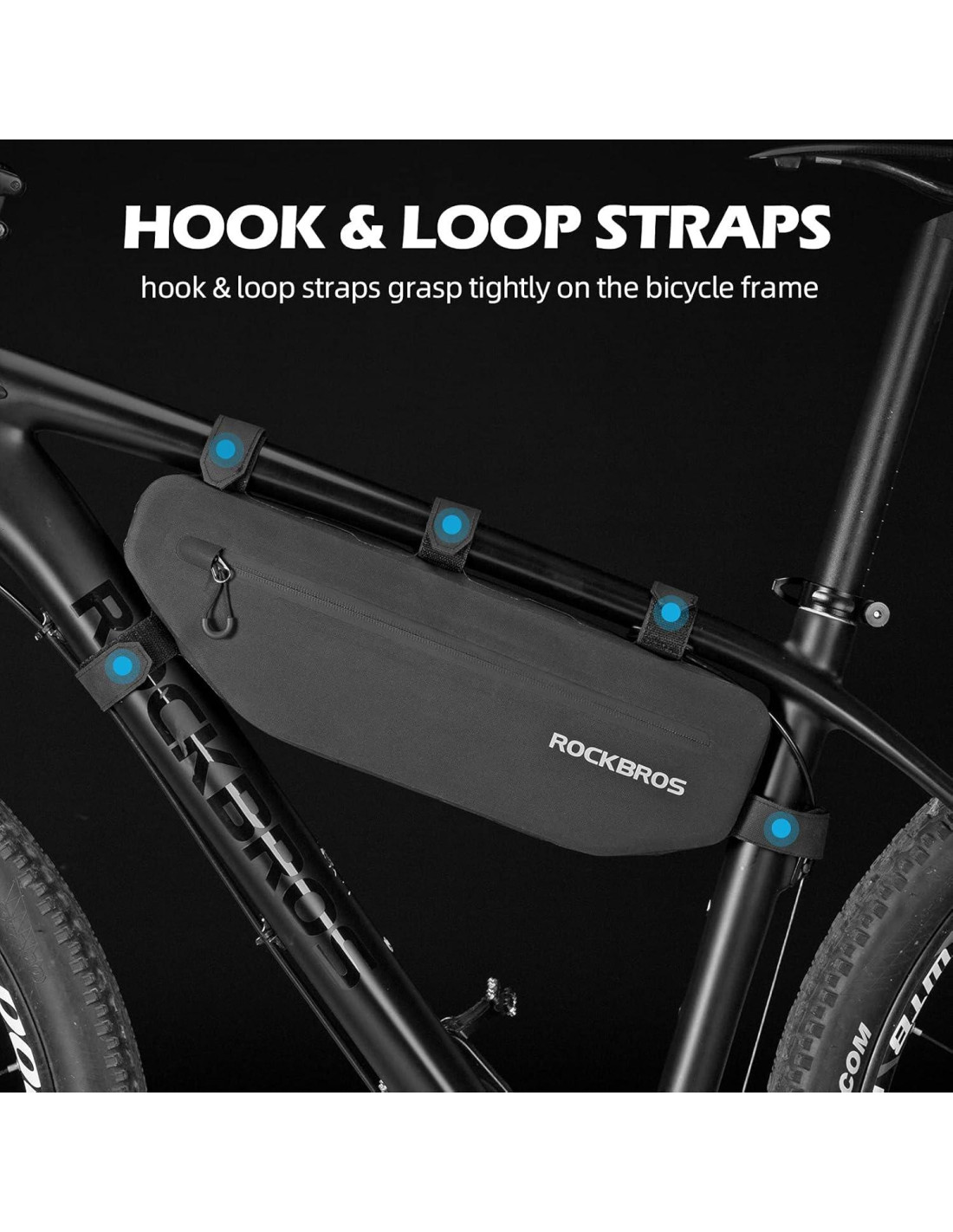 - INSTALACIÓN SIN HERRAMIENTAS Y AJUSTABILIDAD: Equipado con 5 sujetadores de gancho y bucle y 11 agujeros de montaje pre-perforados, esta bolsa ofrece una posición de correa flexible para adaptarse a la mayoría de los marcos de bicicletas. Personaliza el número y la colocación de las correas para un ajuste ceñido y seguro que se adapta a la geometría única de tu bicicleta.