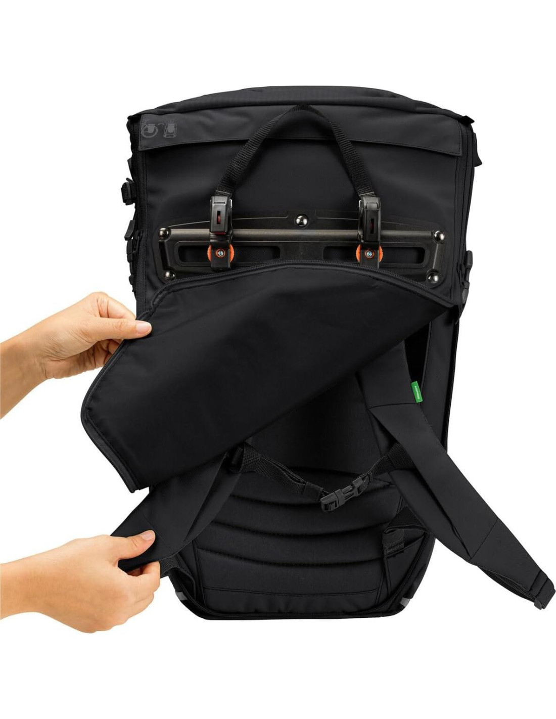 Bolsa modular para bicicleta, convertible en mochila, compartimento para laptop de 13.3 pulgadas con acceso rápido; preparado para LED, división de compartimentos bien organizada, fabricado de manera ecológica a partir de material predominantemente reciclado, producto preparado para LED - se puede complementar con el juego de guía de luz LED, mochila y bolsa para portaequipajes 2 en 1, compartimento principal claro, cierre envolvente para acceso rápido, compartimento para notebook de 13.3 pulgadas (33 x 23 cm) x 2.5 cm, compartimento para notebook accesible desde la parte superior y lateral, divisores organizadores cómodos, compartimento acolchado para smartphone, portallaves y portalápiz, 1 bolsillo lateral para botella elástica, bolsillo frontal con cremallera, asa de transporte superior, soporte para luz intermitente, correa para el pecho, correas de hombro ErgoShape, espalda acolchada, sistema de montaje QMR 2.0 fácilmente ajustable, QMR bloqueable, sistema de sujeción QMR 2.0 se adapta a tubos de portaequipajes redondos con diámetro de 8-16 mm.