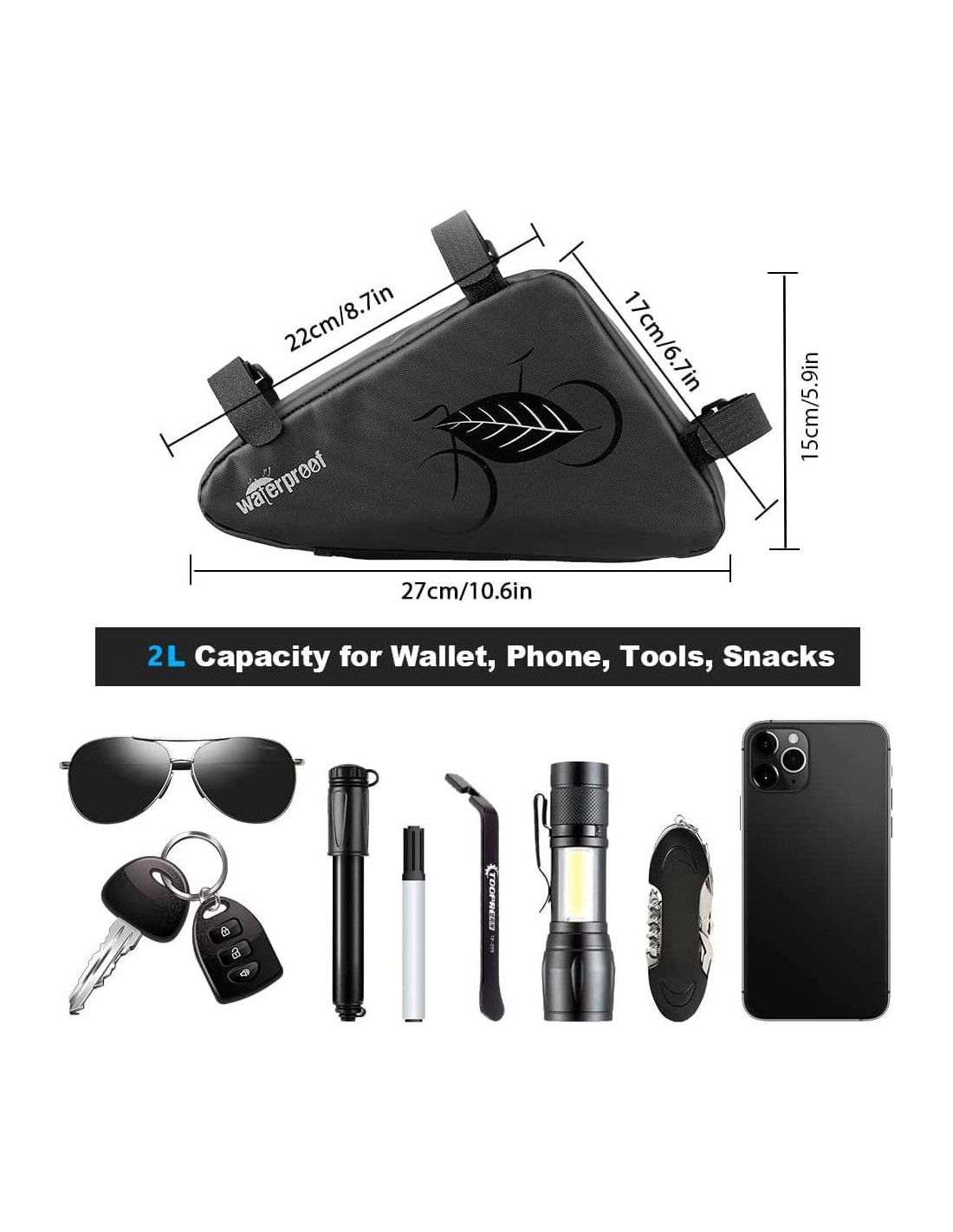 - Bolsa de almacenamiento para bicicleta y herramienta - Las bolsas triangulares para bicicleta están hechas de material de fibra de carbono ultraligero y elegante, y los cierres adoptan tecnología de soldadura sin costuras de alta frecuencia, bloqueando efectivamente la entrada de agua de lluvia en la bolsa rápidamente. Equipado con herramientas de reparación de bicicletas, puede ayudarlo a solucionar la mayoría de los problemas de su bicicleta con esta herramienta.
