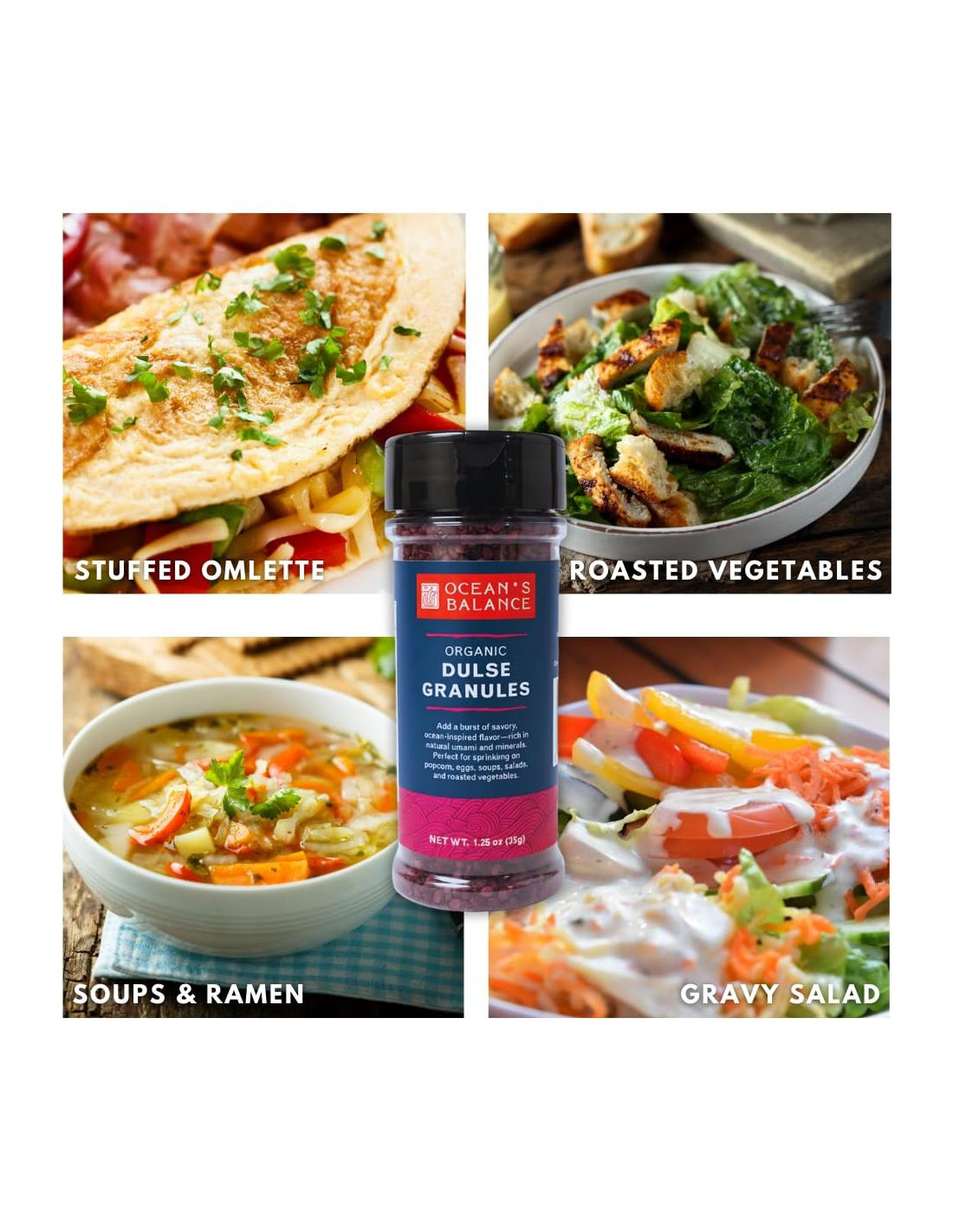 Alga Dulse: Disfruta del rico y ahumado sabor de la Dulse, un vegetal marino denso en nutrientes; estos copos de Dulse son fáciles de incorporar en tu dieta y son una excelente opción para cubrir tus comidas favoritas o espolvorear sobre tu comida