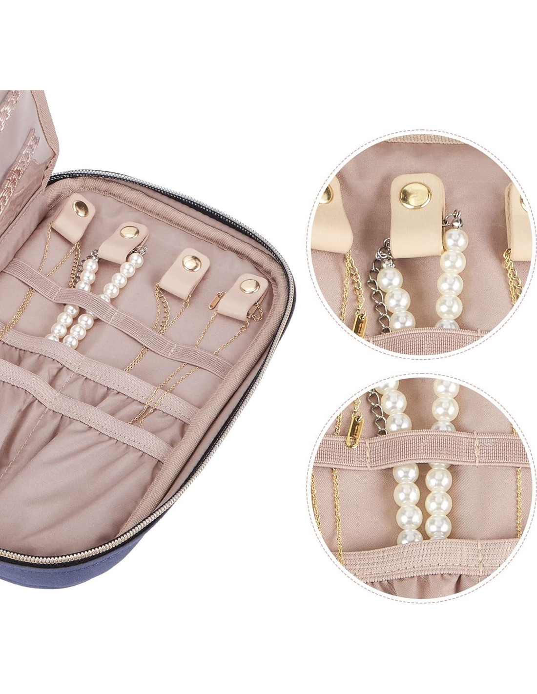 - BIEN ORGANIZADO - Con áreas designadas para pendientes, anillos, collares y pulseras. Este estuche de joyería te mantendrá organizado en movimiento y mantendrá todas tus joyas preciosas en orden