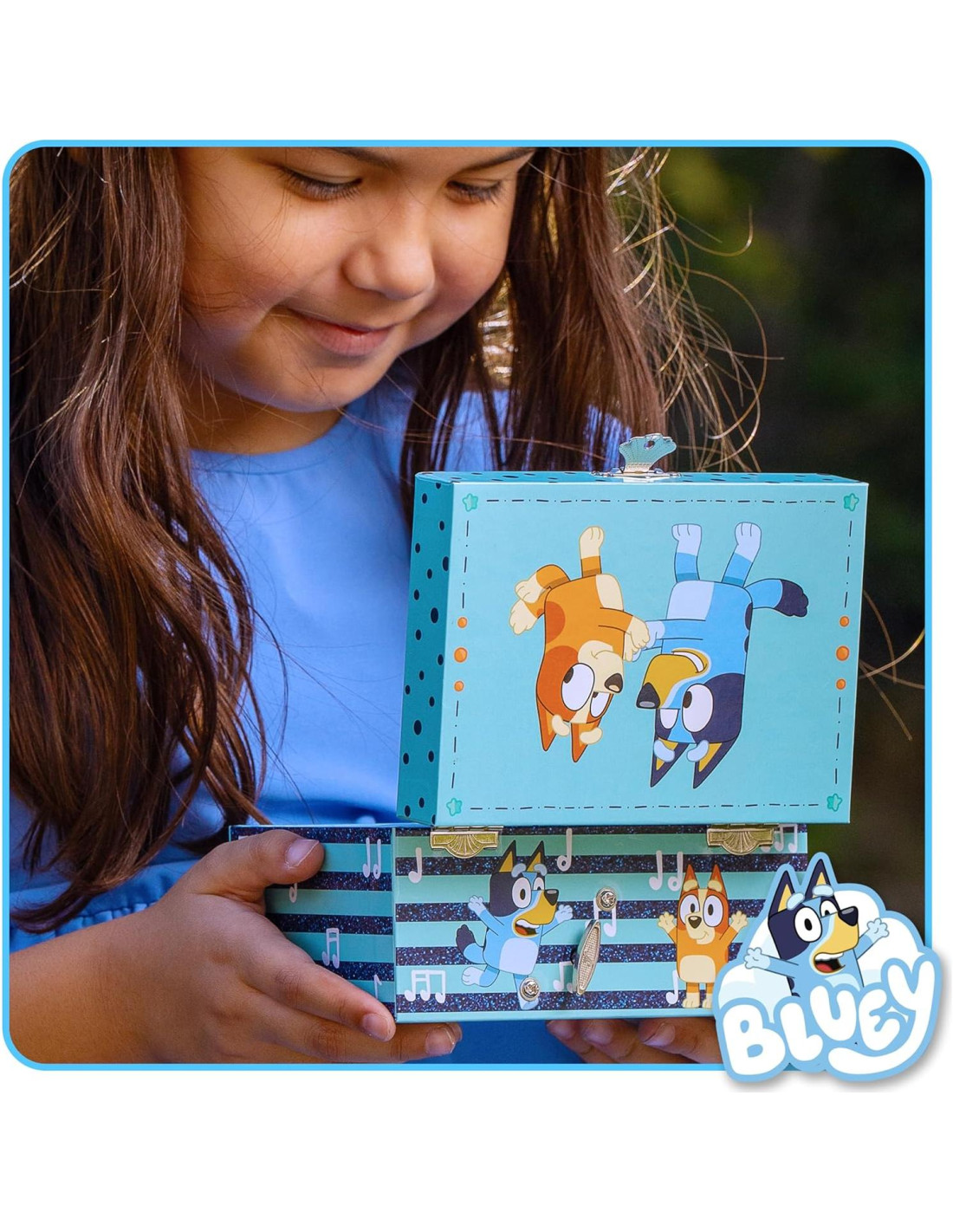 - MELODÍAS Y RECUERDOS - Abre la tapa para revelar una figurita giratoria de Bluey y escuchar la dulce melodía del cartoon de Bluey que trae alegría a cada pieza de joyería almacenada dentro. ¡Perfecto para niños de 3 años en adelante, es una caja de tesoros que adorarán!
