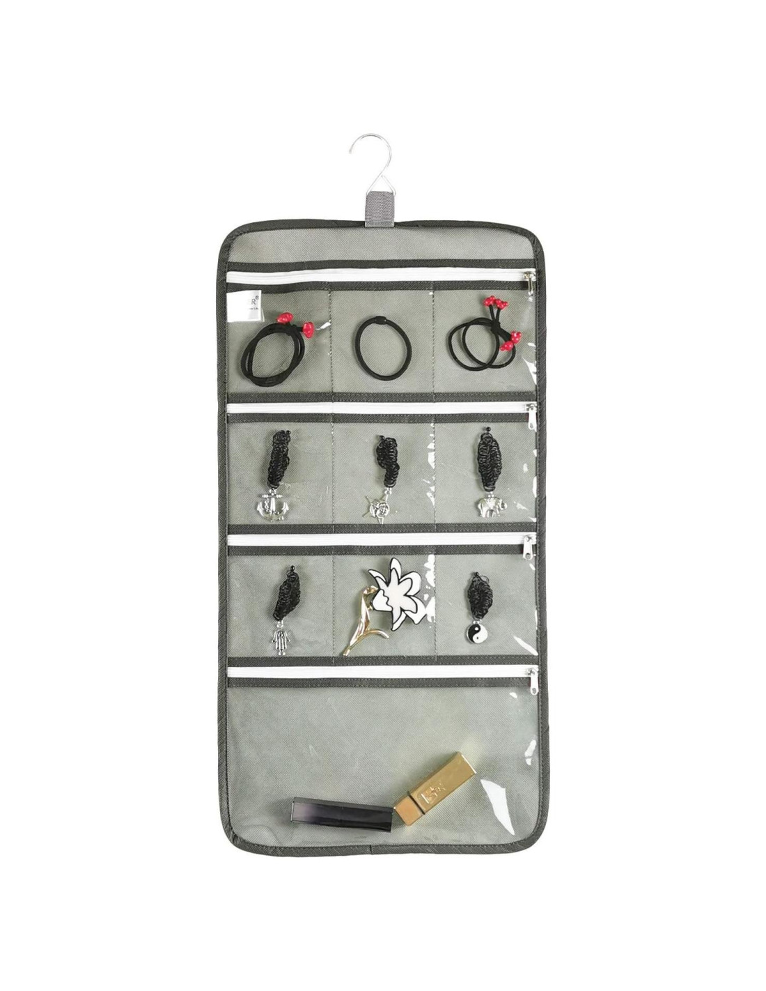 Bolsillos de almacenamiento de joyería colgantes diseñados para sostener artículos que van desde collares, aretes, anillos hasta maquillaje, accesorios para el cabello y joyas voluminosas.