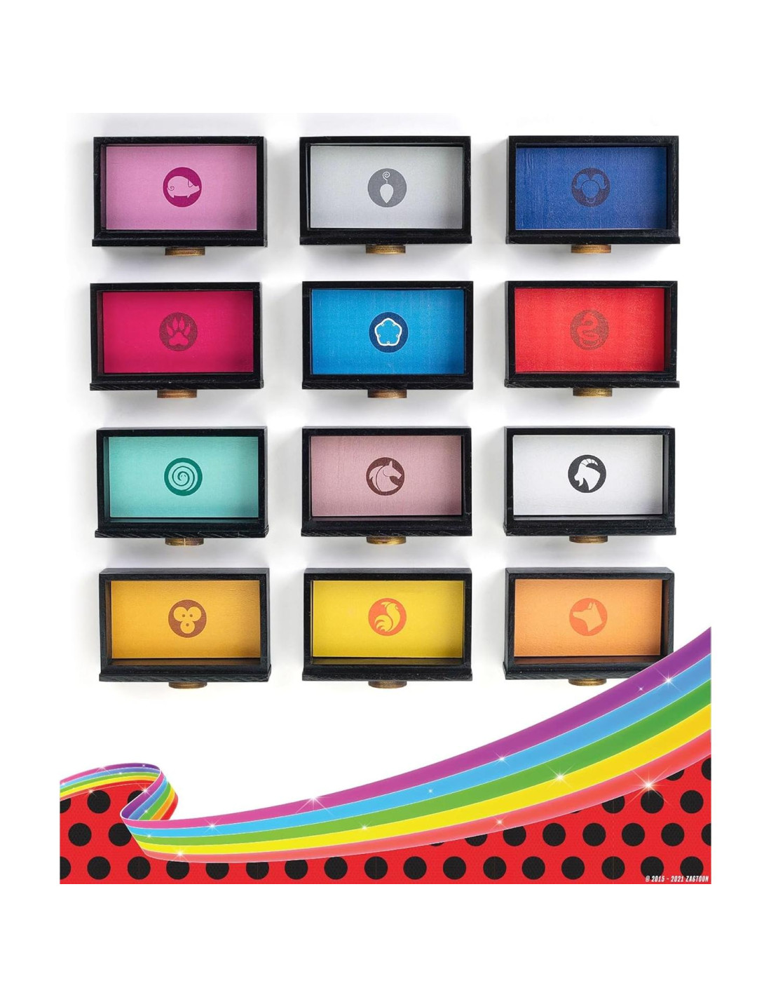 - Esta mágica caja de joyas hecha de madera de pino lacada ha sido elaborada con cariño, fiel al original, en un taller de carpintería. Con 12 cajones y un gran compartimento bajo la tapa, ofrece mucho espacio para todos los encantos mágicos "Miraculouses" (además de otros pequeños tesoros, por supuesto). Los cajones están sujetos por potentes imanes y la tapa está atornillada a la caja con una bisagra de alta calidad.