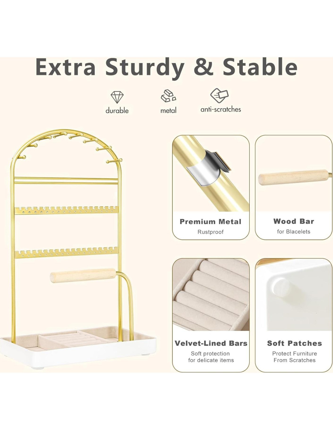 - Organizador de joyería todo en uno: Desde collares largos hasta pendientes de botón, este versátil soporte de joyería acomoda todo tipo de accesorios, manteniendo toda tu colección organizada y fácilmente accesible. Eleva la decoración de tu dormitorio con este elegante soporte de joyería, combinando organización práctica con un diseño moderno y chic que complementa cualquier estilo.