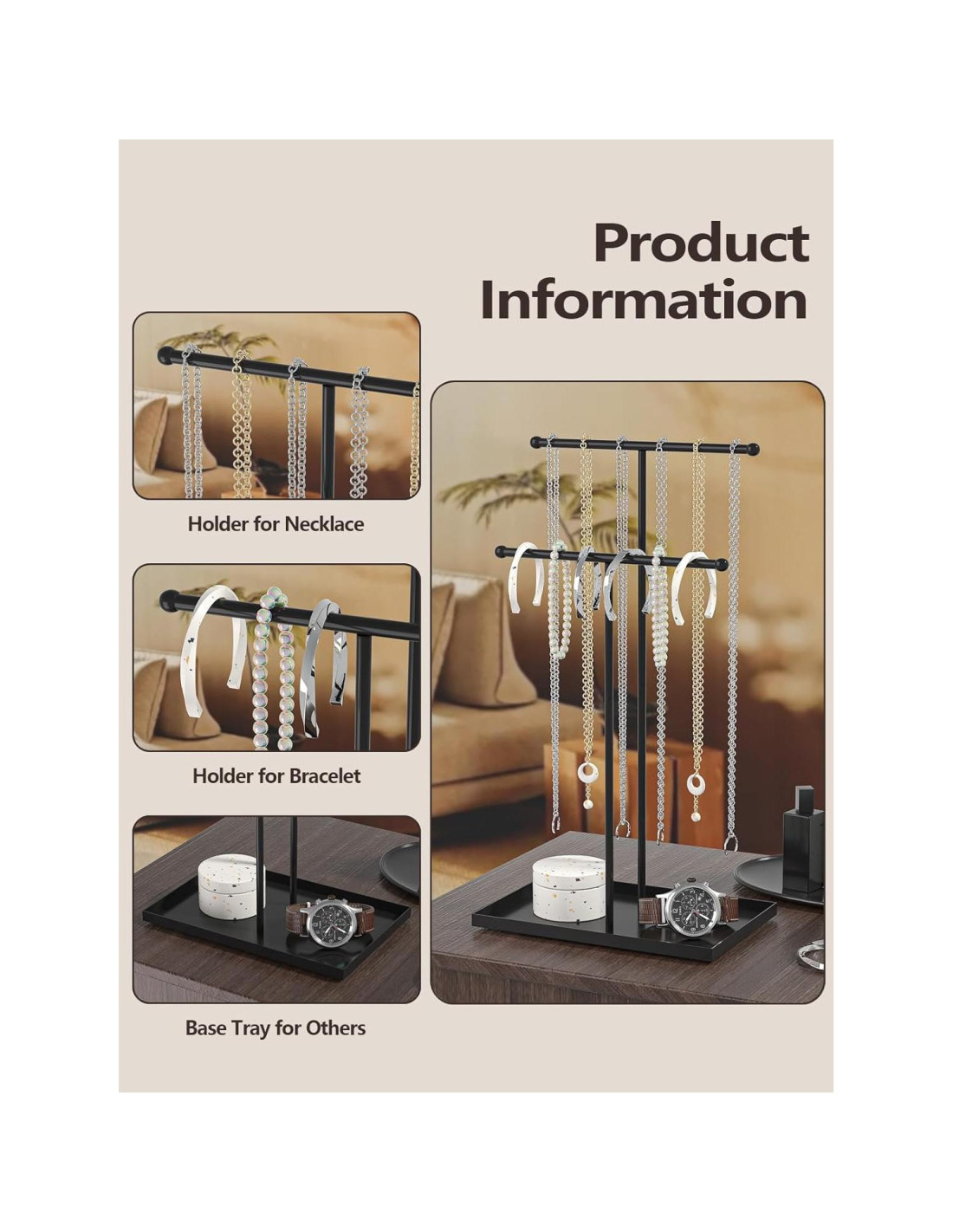 - Diseñado para mujeres y hombres, este soporte organizador de joyería satisface las necesidades de diferentes usuarios y es una herramienta de almacenamiento y exhibición versátil para joyería de diferentes longitudes, como collares y pulseras.