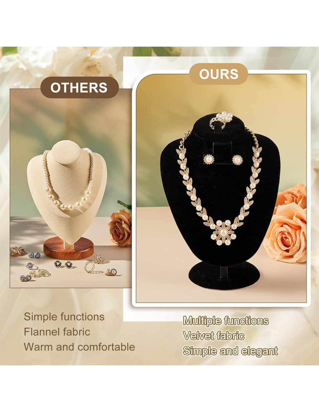 - Atractivo Visual Mejorado: ¿por qué esconder tus joyas cuando puedes exhibirlas? Estos soportes de exhibición de joyería están diseñados inteligentemente para realzar el brillo y atractivo de tus joyas; Su fondo negro resalta la sofisticación y el brillo de tus collares, añadiendo a su encanto; Estos soportes vienen en un color negro clásico, disfruta de la atmósfera elegante creada por estos soportes para collares de joyería; Fabricados con terciopelo negro de calidad que enfatiza la elegancia de tus collares